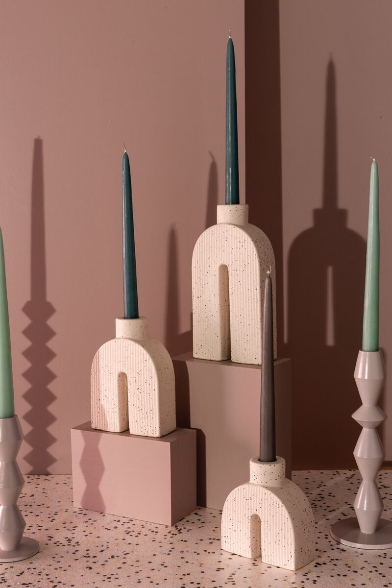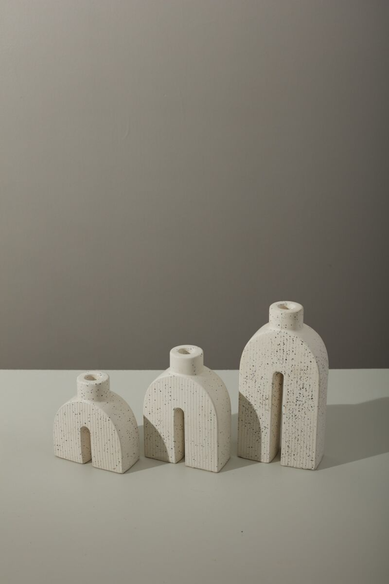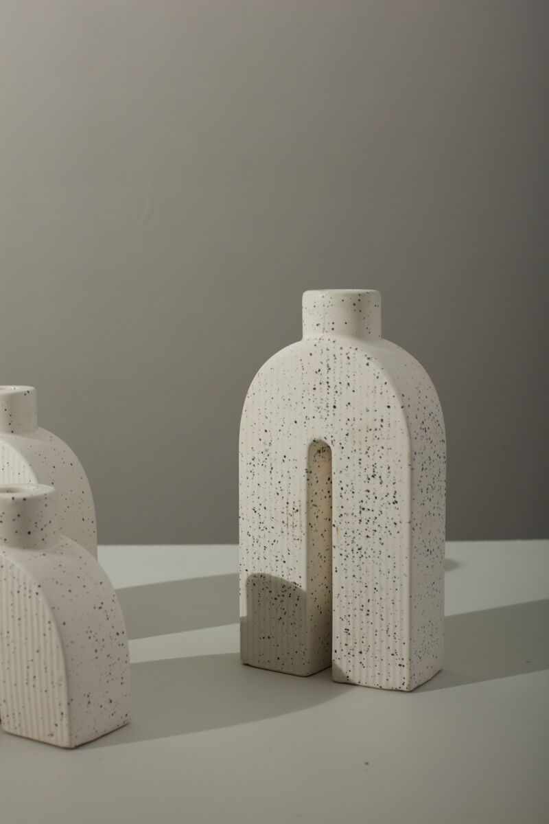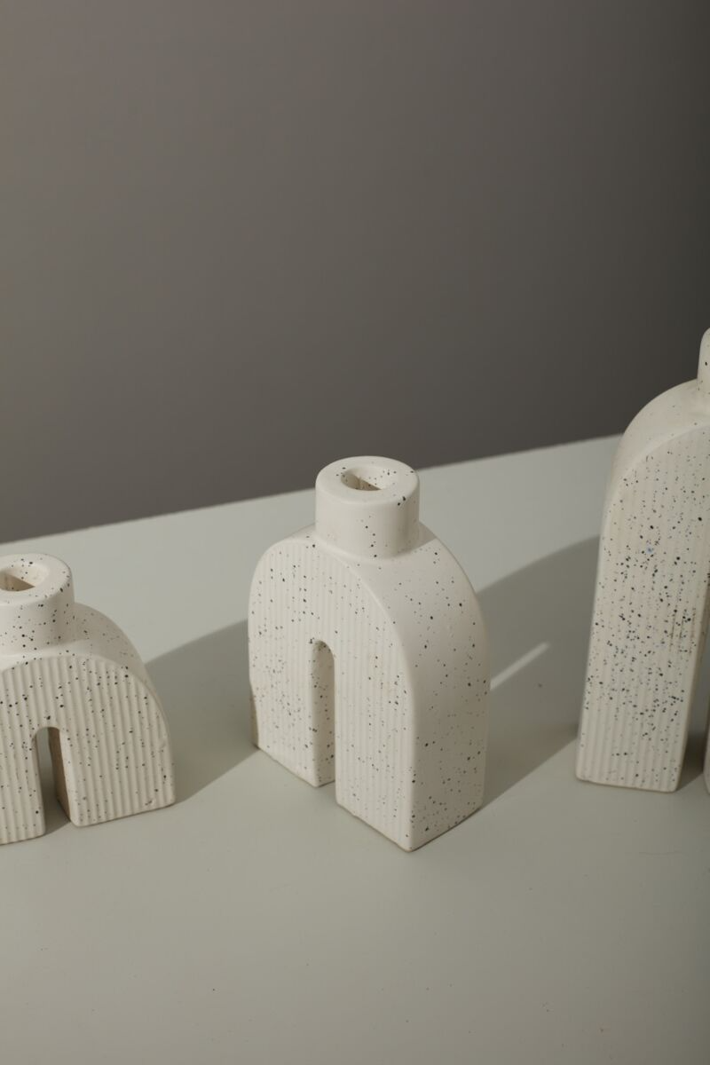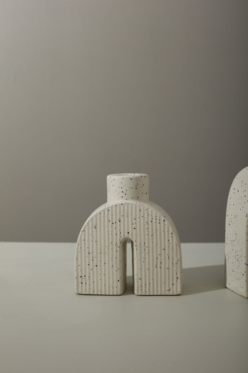 This curated pair of Solenne Arch Candleholders showcases architectural design through ceramic craftsmanship. The distinctive arched silhouettes and textured ivory surface create visual interest while serving as functional vessels for taper candles. Ideal for discerning interiors seeking understated luxury, these pieces enhance contemporary tables and peaceful retreats with quiet sophistication and refined aesthetics.