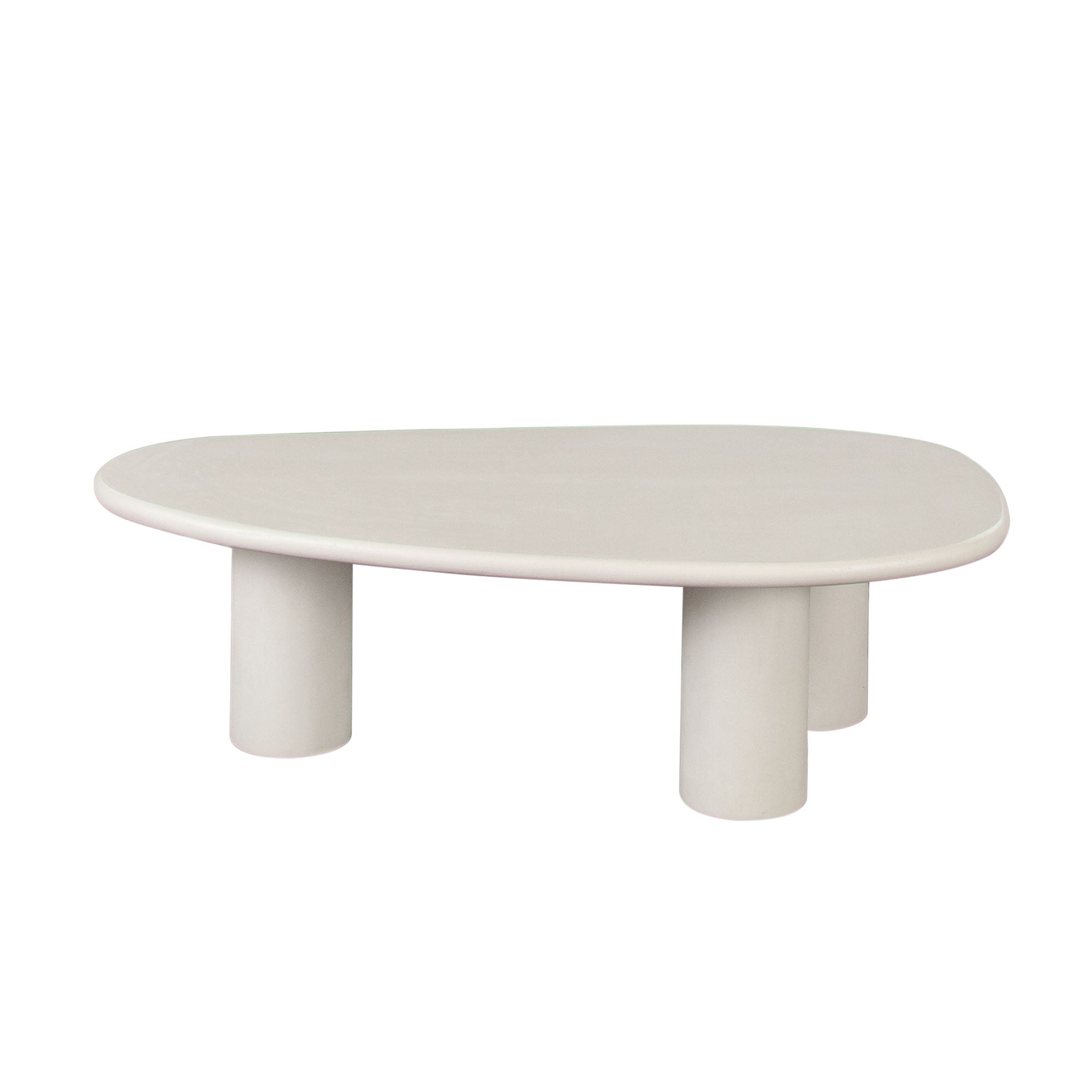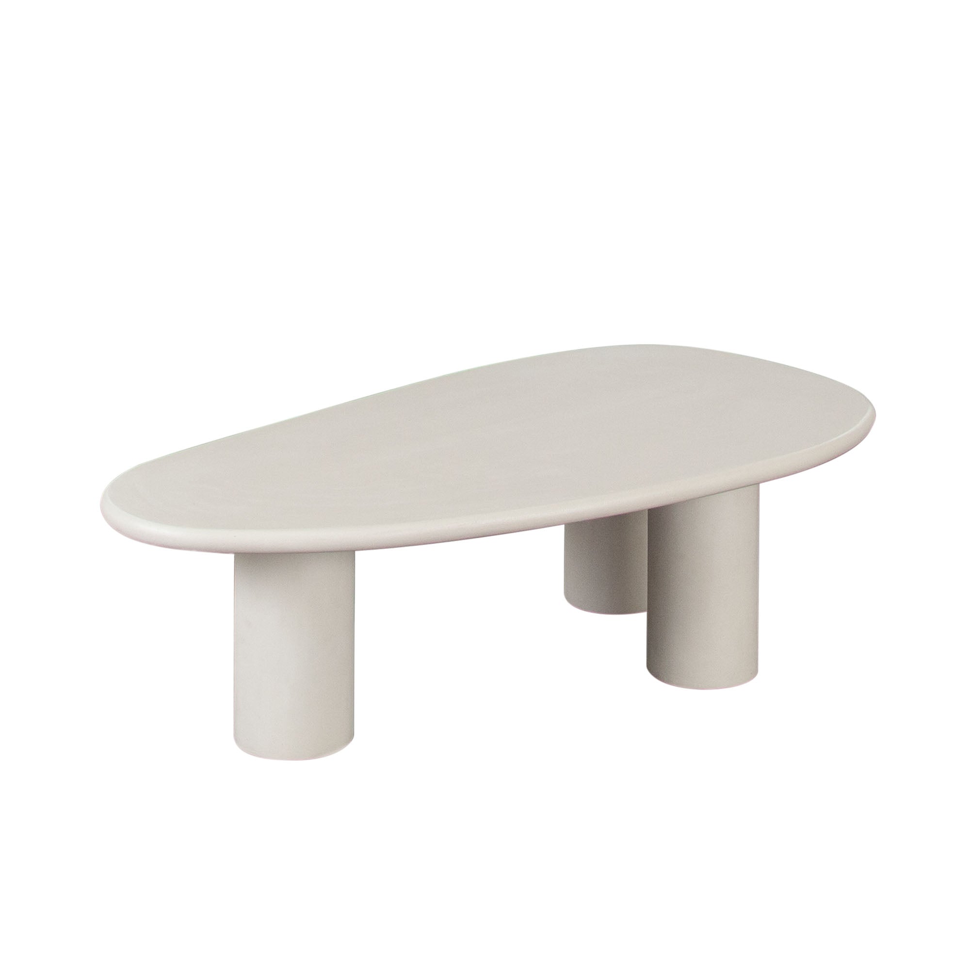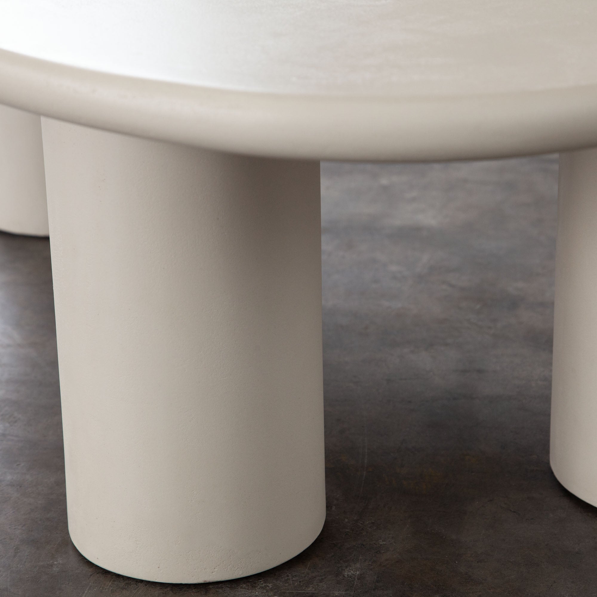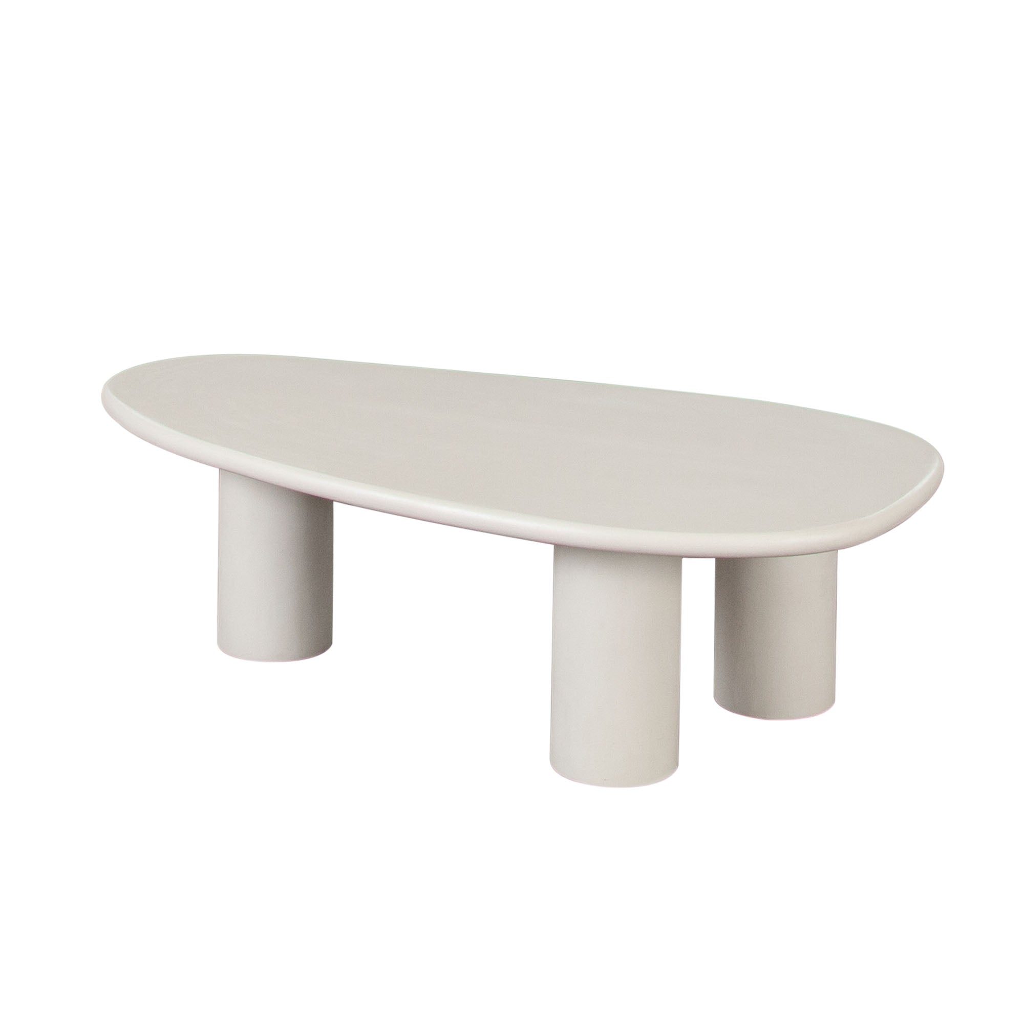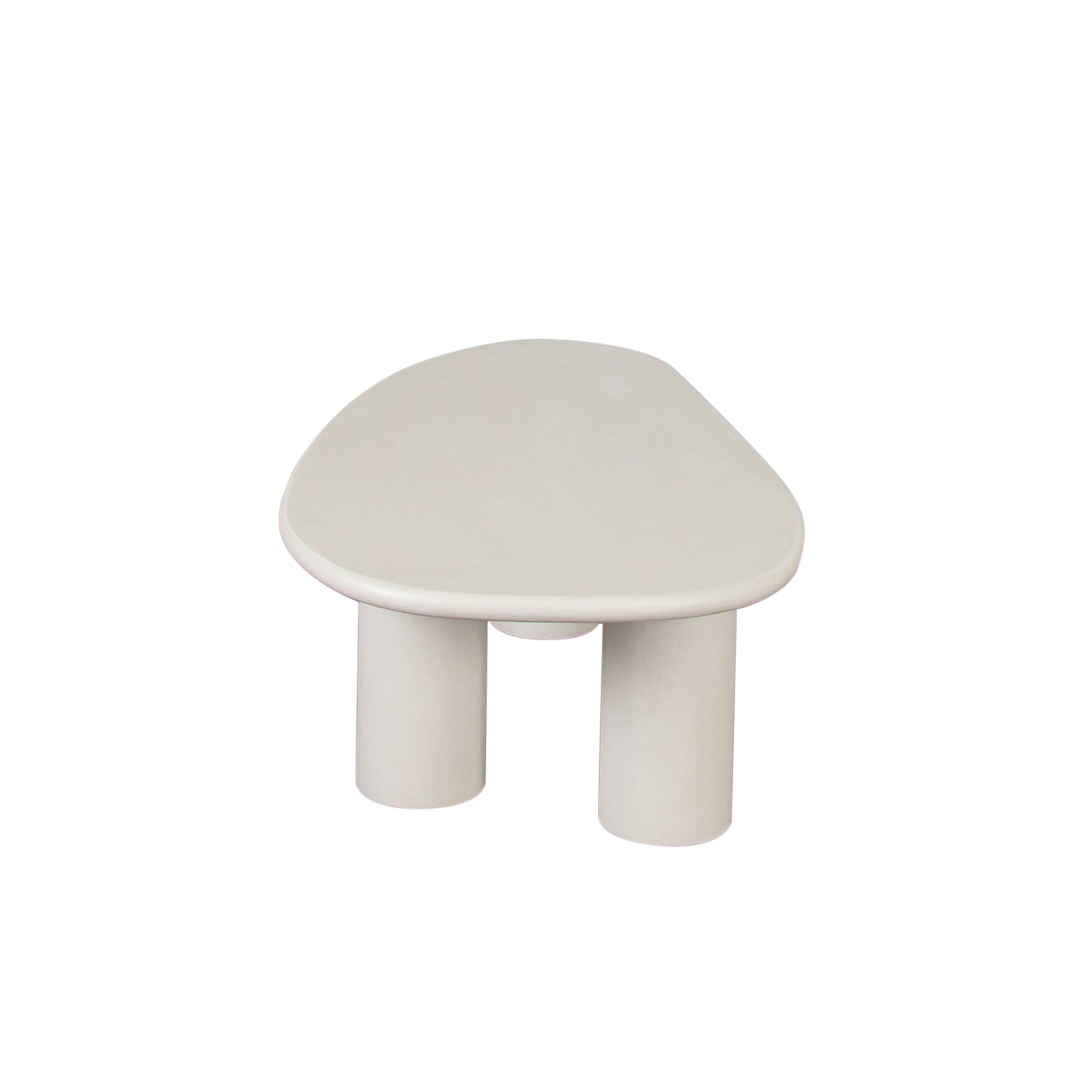 The design is anchored by three substantial cylindrical supports that provide a bold visual foundation and steadfast stability. Its surface is finished in a sophisticated, matte ivory cement, a refined and versatile tone that brings a modern, textural quality to any space. More than just a surface, this table’s unique form and neutral palette make it a remarkably adaptable focal point, seamlessly integrating into modern, minimalist, or transitional interiors.