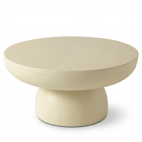 Organic form and practical strength in one grounded piece. The Layla Round Table features a wide flat tabletop supported by a softly contoured pedestal base, all crafted from solid fiberstone. The protective powder coating resists stains, UV exposure, and heat while offering impressive strength for everyday use. Perfect for living rooms, patios, or sunrooms wanting a table that transitions seamlessly between indoor and outdoor spaces. Rubber floor protecting pads provide stability. Arrives fully assembled, ready for instant placement. Quiet confidence in a rounded sculptural form.