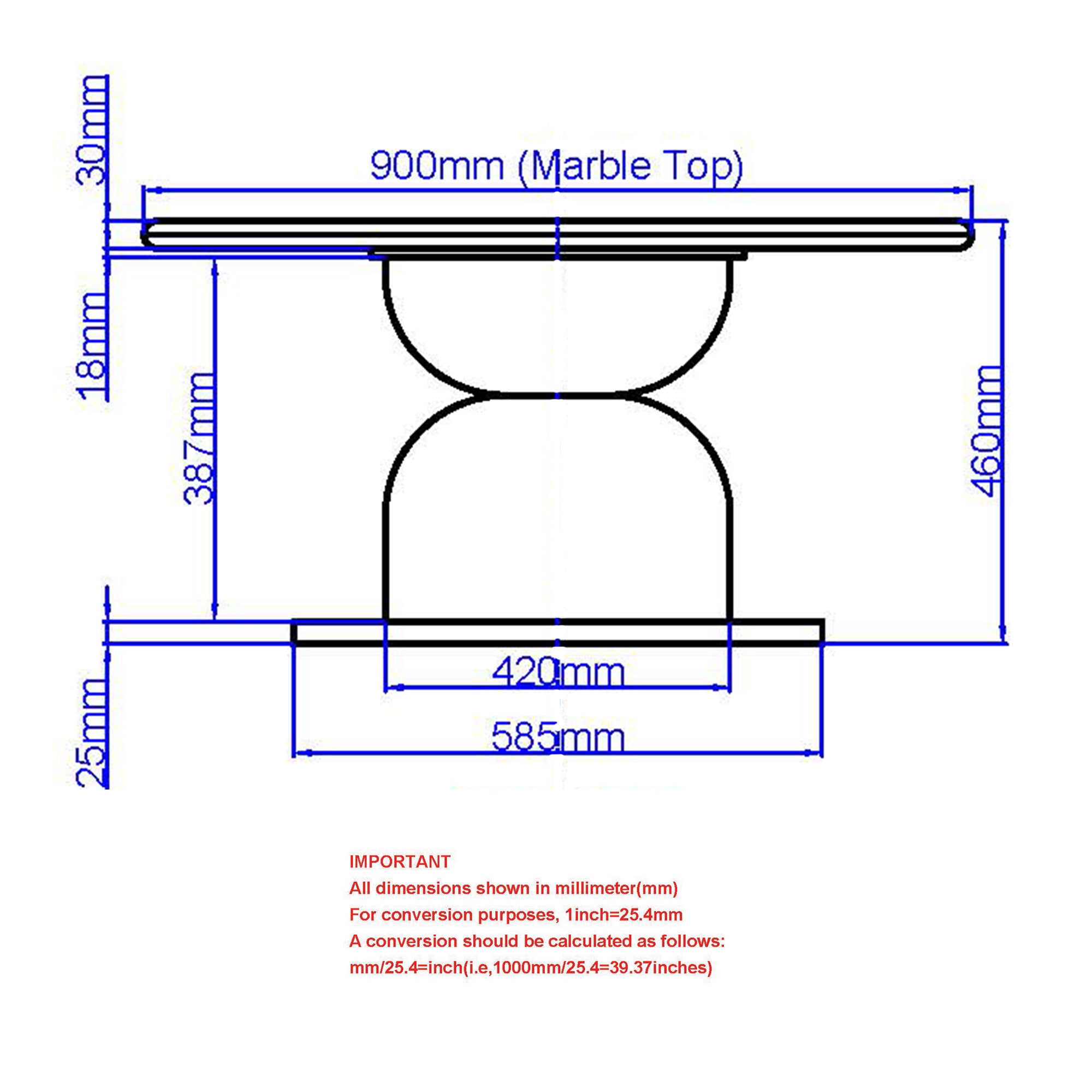 - Thick table top is mango wood with Fantasy Brown marble slab