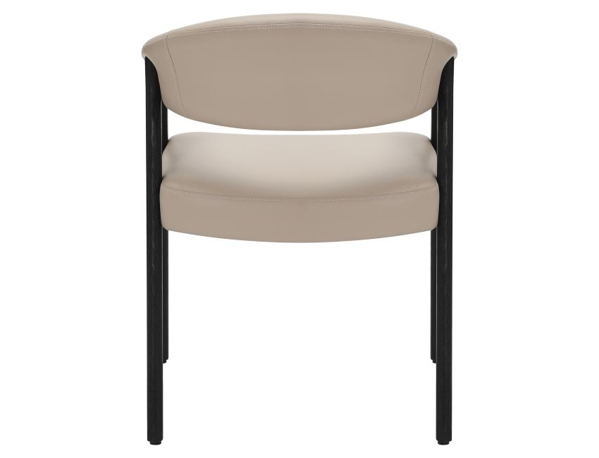 Crafted with precision, the Mide Dining Chair merges sophisticated design with exceptional comfort. Its mushroom faux leather upholstery pairs seamlessly with a brushed black wood frame, creating an elegant aesthetic that complements both contemporary and traditional interiors. The generously padded seat and curved backrest, reinforced with a professional-grade construction of foam, webbing, and springs, provide reliable support for extended dining occasions. Versatile enough to anchor a formal dining setting or serve as distinctive accent seating throughout your home, this chair delivers both style and enduring comfort.