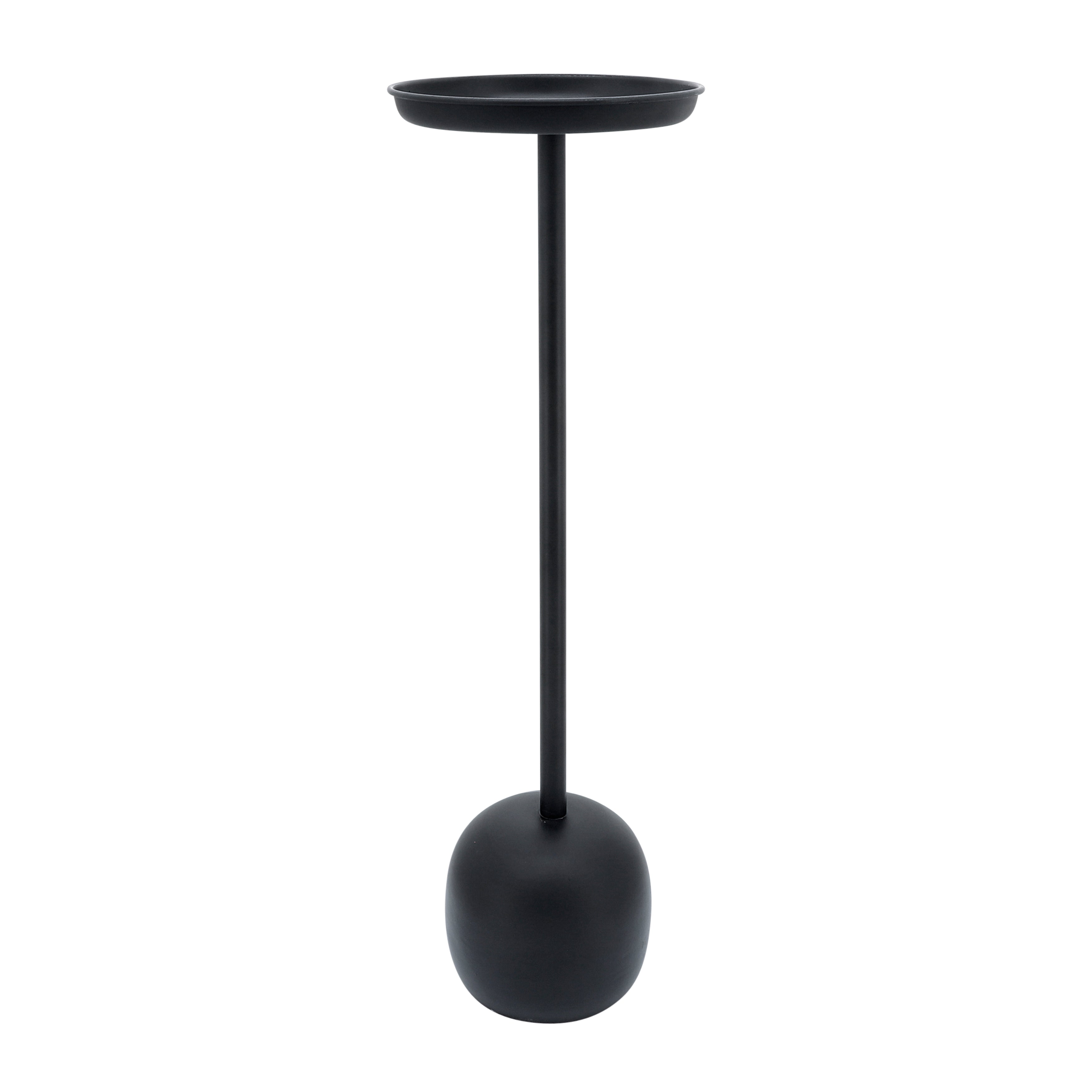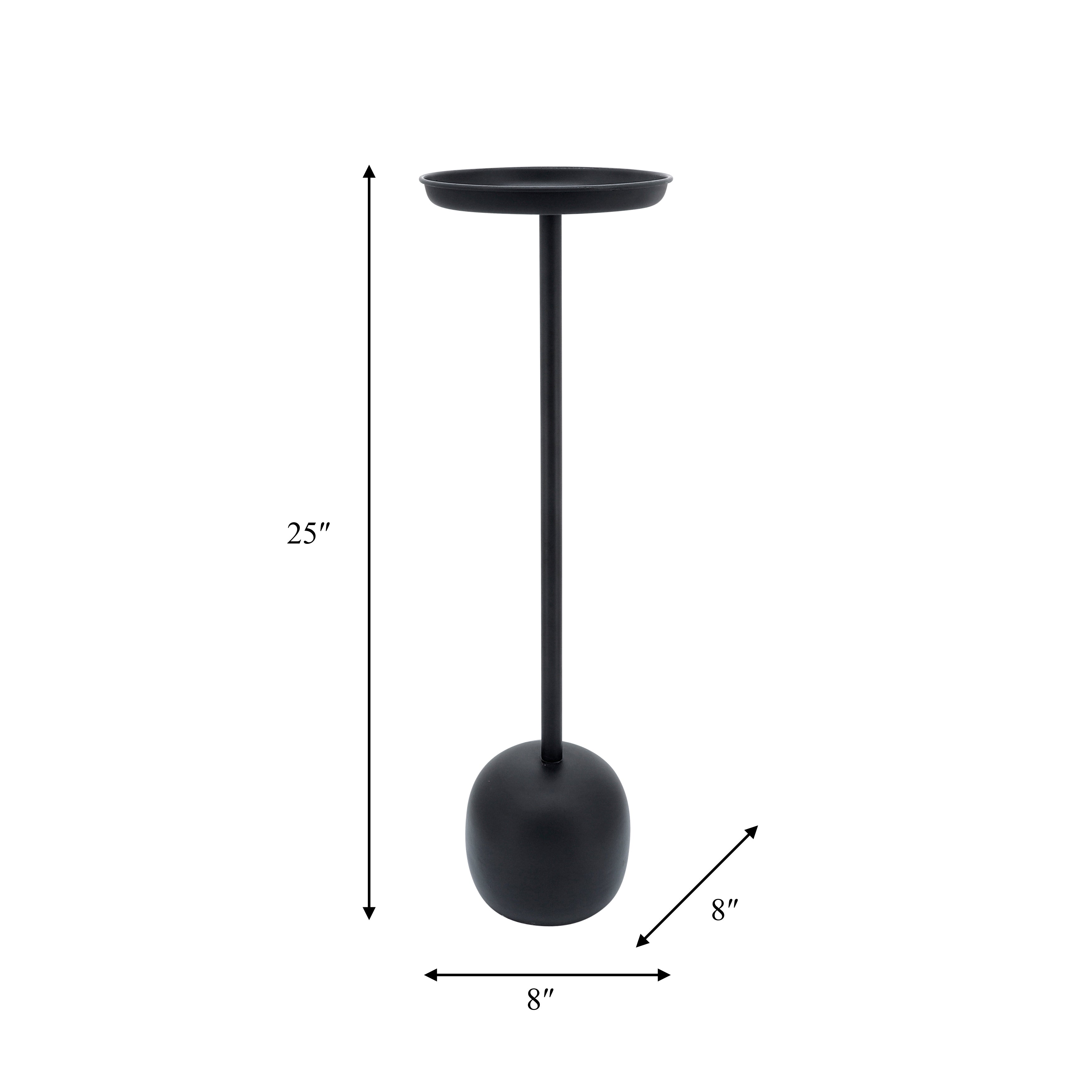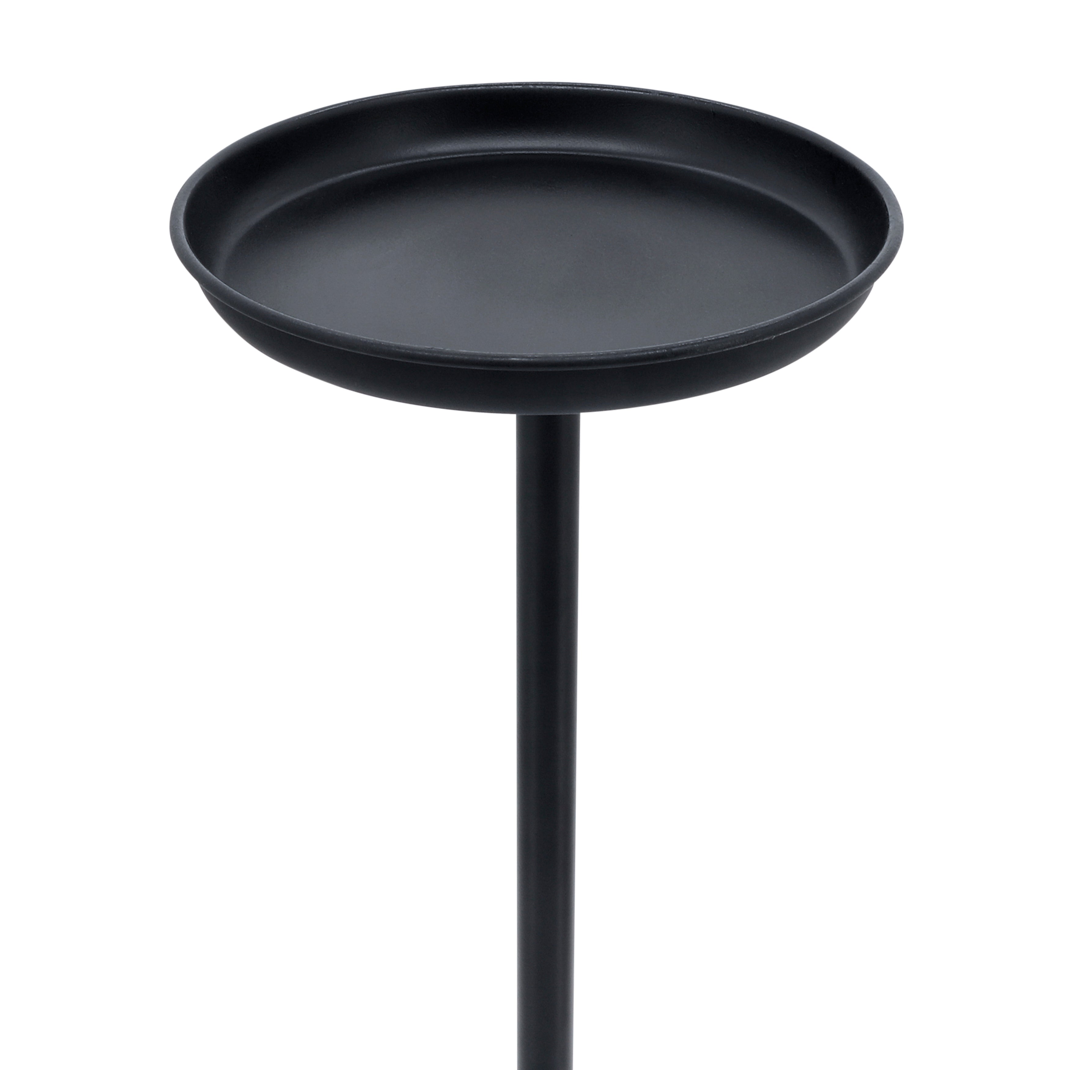 The Obsidian Balance Drink Table, standing 25 inches tall, is a stylish and functional complement to any room. Its smooth black metal finish and round tabletop bring a refined, modern aesthetic to your interior. Ideal for holding beverages, snacks, or decorative accents, this versatile table fits seamlessly beside seating areas or at the end of couches, enhancing both living rooms and entertaining spaces with understated elegance.
