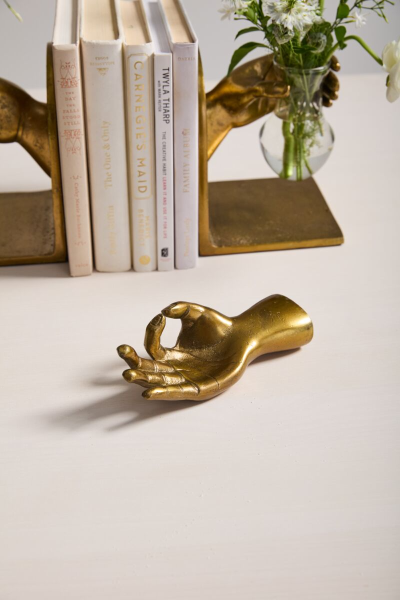 We all need a hand to hold, but especially one that doubles as a hook for holding a Tillandsia air plant, keys, necklaces, or whatever suits your fancy. The recycled cast aluminum Handheld Wall Decor has an antique gold finish & playful design can be mounted to the wall with the 2 keyhole openings in back or styled on a surface as an accent piece.