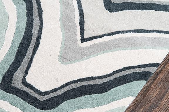 The graphic design of this modern area rug collection adds contemporary flair to floors throughout the home. Captured in a spectrum of vivid shades, polka dots, chevron stripes, triangulated patterns and checkerboard prints are perfect for layering above carpet or hard surfaces. Hand tufted from natural wool fibers, this decorative area rug assortment emanates fun with its oversized geometric arrangements and vibrant splashes of color.