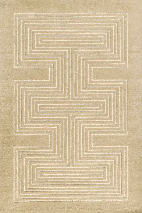 Crafted from 100% hand-tufted New Zealand wool, it offers an unparalleled tactile experience—luxuriously soft underfoot, naturally resilient, and built to last for generations. The design embraces a subtle tone-on-tone aesthetic, where simple geometric shapes or abstract patterns are woven in a harmonious range of warm beige, cream, and oatmeal hues. This creates a layered, textural depth that feels both calming and visually engaging.