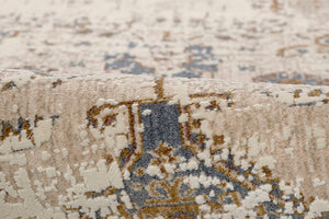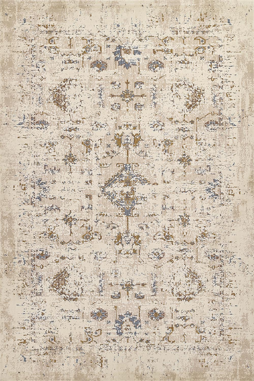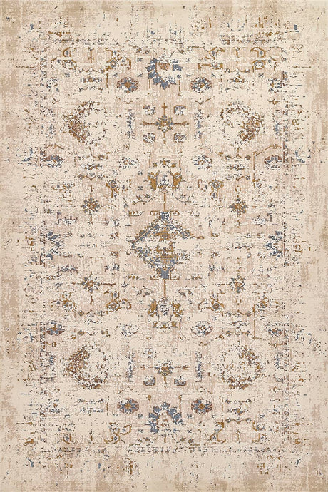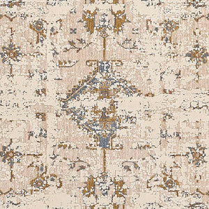 Vintage Distressed Medallion Polyester Blend Abstract Area Rug blends classic design with a modern, softly distressed finish. The traditional medallion pattern is reimagined through an abstract lens, creating a layered, time-worn look that feels both refined and relaxed. Subtle fading and tonal variation give the rug a sense of depth, while hints of blue and warm neutrals add quiet contrast across the surface.