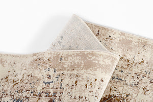 Machine made from a durable polyester and polypropylene blend, this rug offers reliable performance with a soft, smooth feel underfoot. A slight sheen enhances the intricate detailing, catching light in a way that highlights the distressed pattern without overwhelming the overall design.