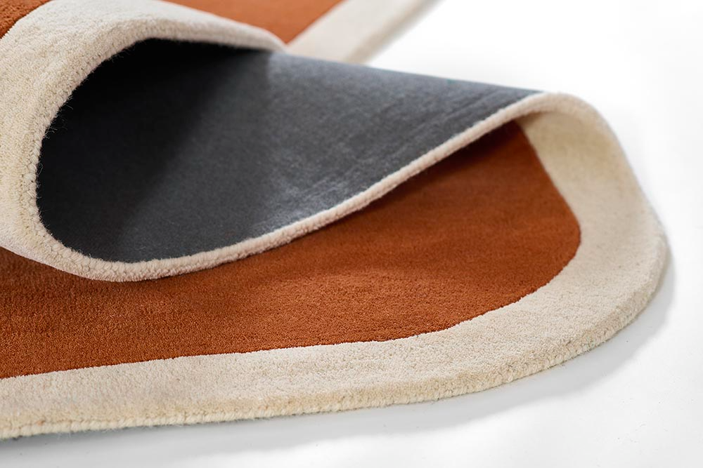 If you’re looking to add texture to a room without pattern, this vivid copper rug brings color and modern minimalism to your floors. Its bold color only serves to enhance a clean-lined space while nodding to retro-inspired trends. The rounded corners soften the design, while adding an organic feel and subtle movement.