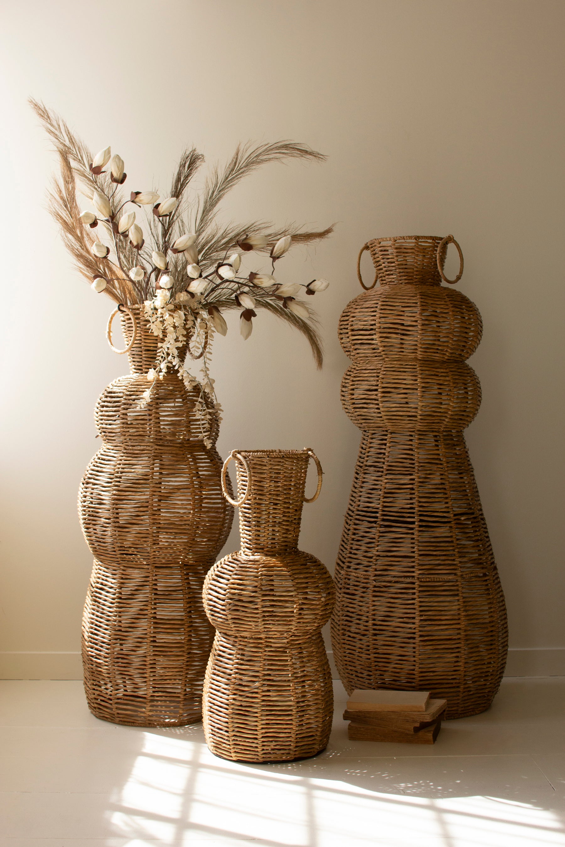 The Organic Essential: Woven Seagrass Floor Vases, Set of 3