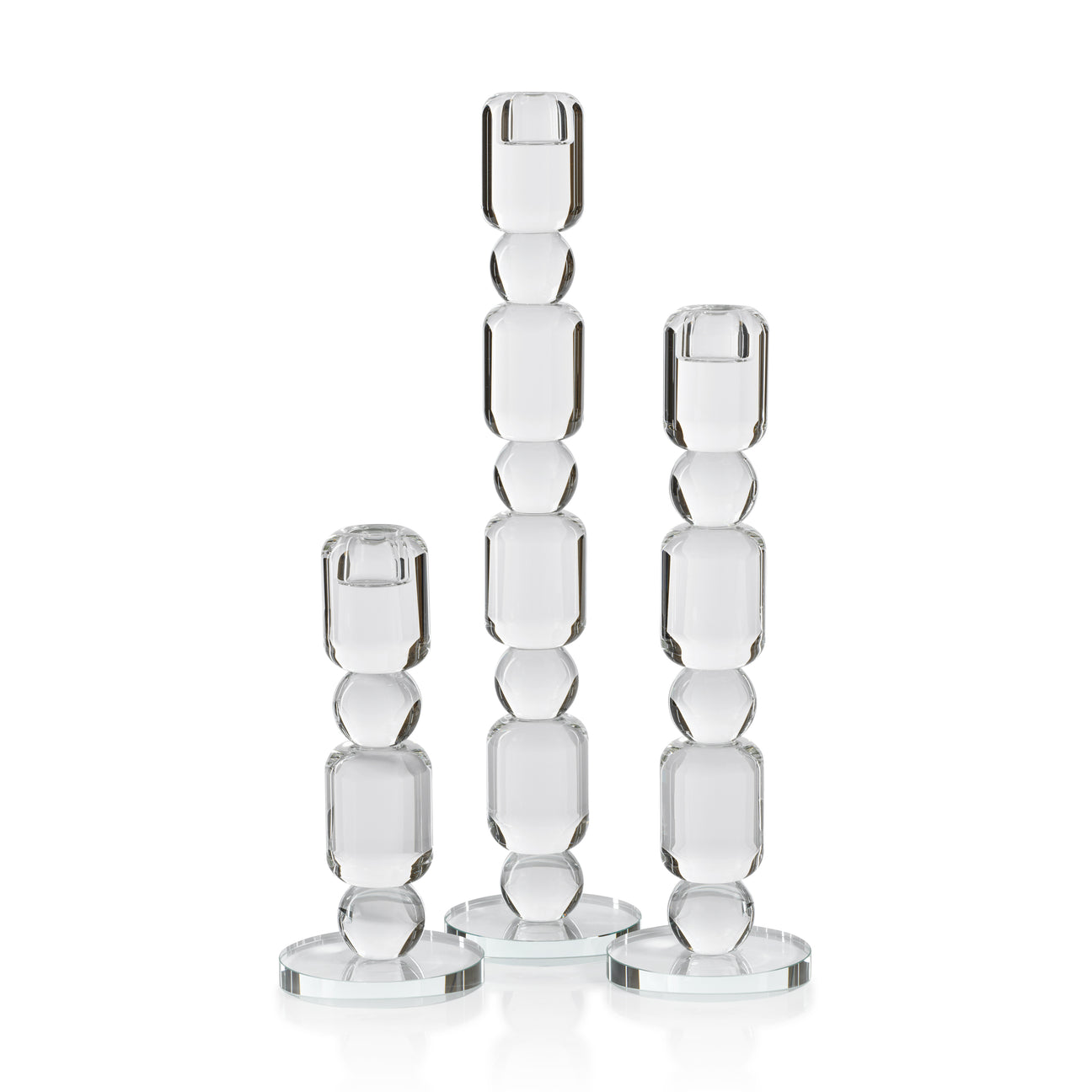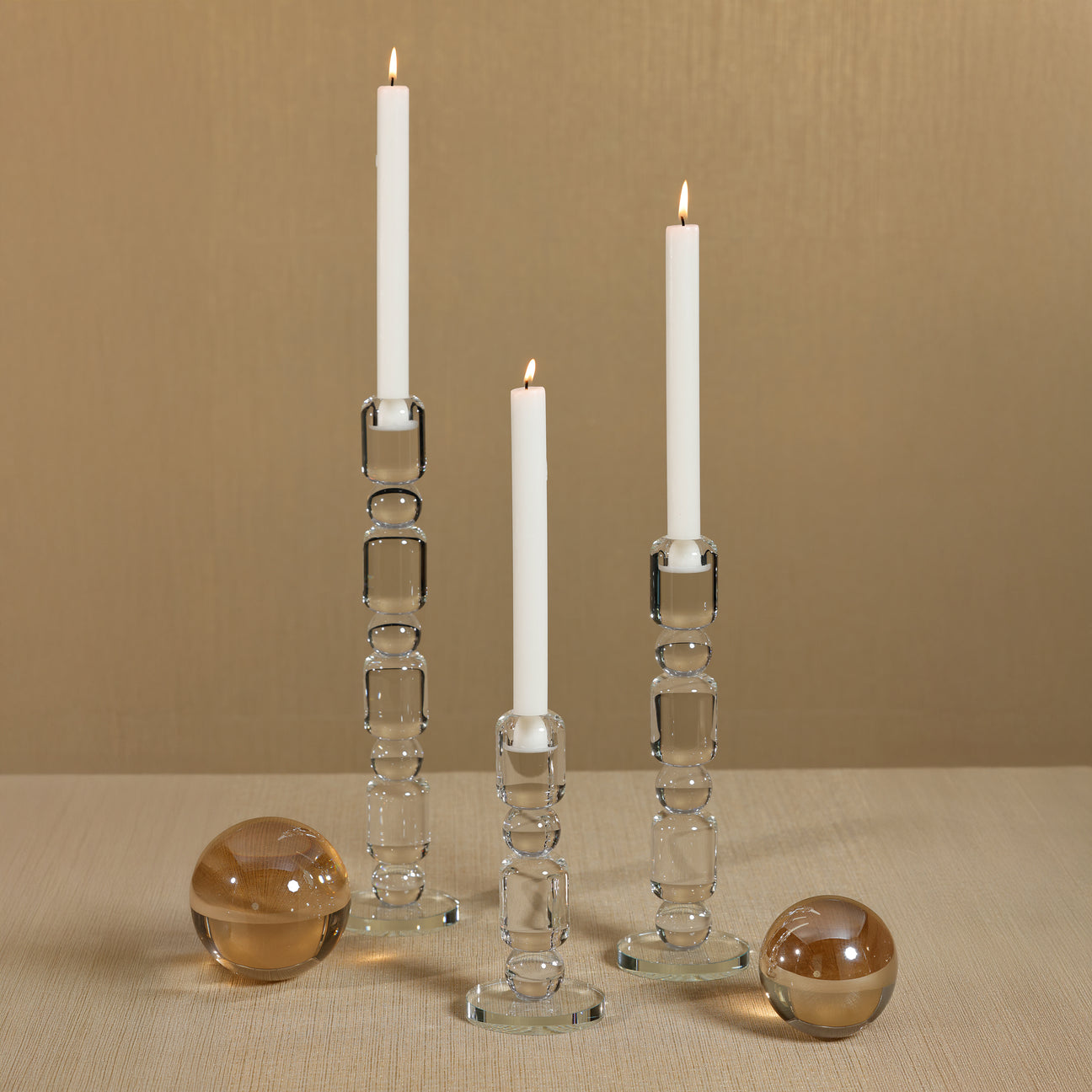 Add a touch of timeless sparkle to your table with the Alexis Crystal Glass Taper Holders. This elegant set of two is meticulously crafted from full-lead crystal, featuring a deeply faceted, weighted base that captures and refracts light into a dazzling display from every angle. The sleek, slender stems provide secure, graceful support for your favorite taper candles. Perfect for flanking a centerpiece, adorning a mantel, or elevating a dinner setting, these holders blend substantial quality with delicate beauty. They are a classic investment for creating an atmosphere of refined romance and celebration.