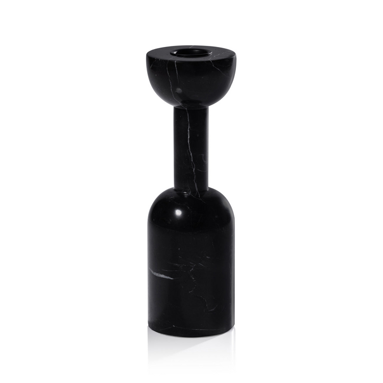 Embrace serene, modern elegance with the Noir Candle Holder. This piece masterfully blends organic texture with industrial form, featuring a solid cylindrical body crafted from striking Black Marquinho marble, crowned with a sleek metal cap. Inspired by minimalist Japanese aesthetics, its clean lines and substantial presence create a peaceful, anchored focal point. The contrasting matte stone and polished metal finish make it a sophisticated sculptural object, whether displayed alone or as part of a curated collection. It transforms a simple candle into a moment of contemplative beauty.