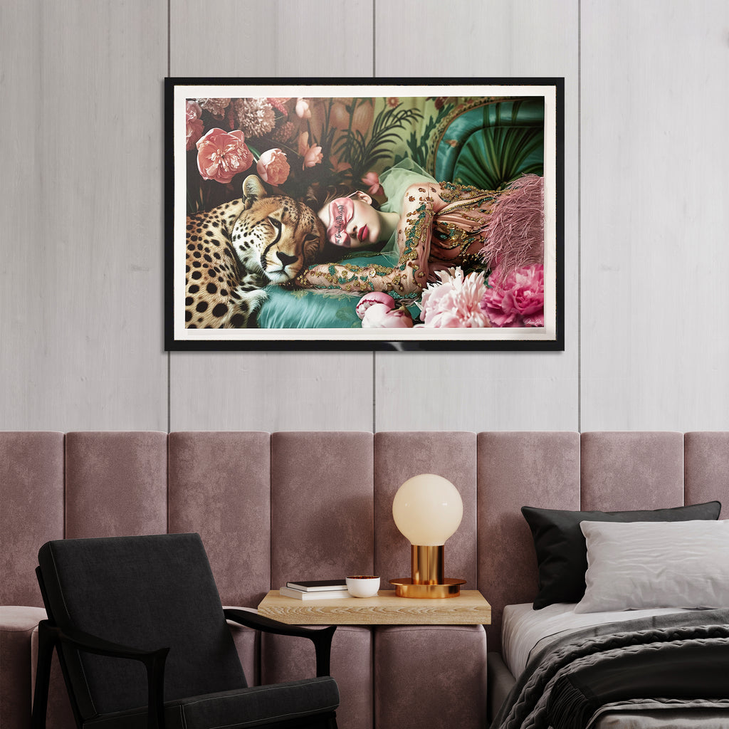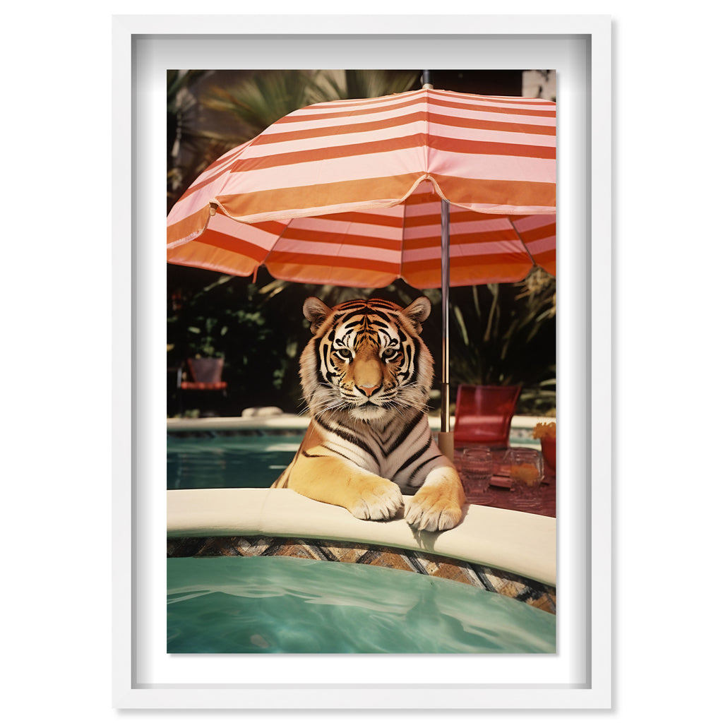 Poolside Tiger Encounter Wall Art in a Shadowbox Frame