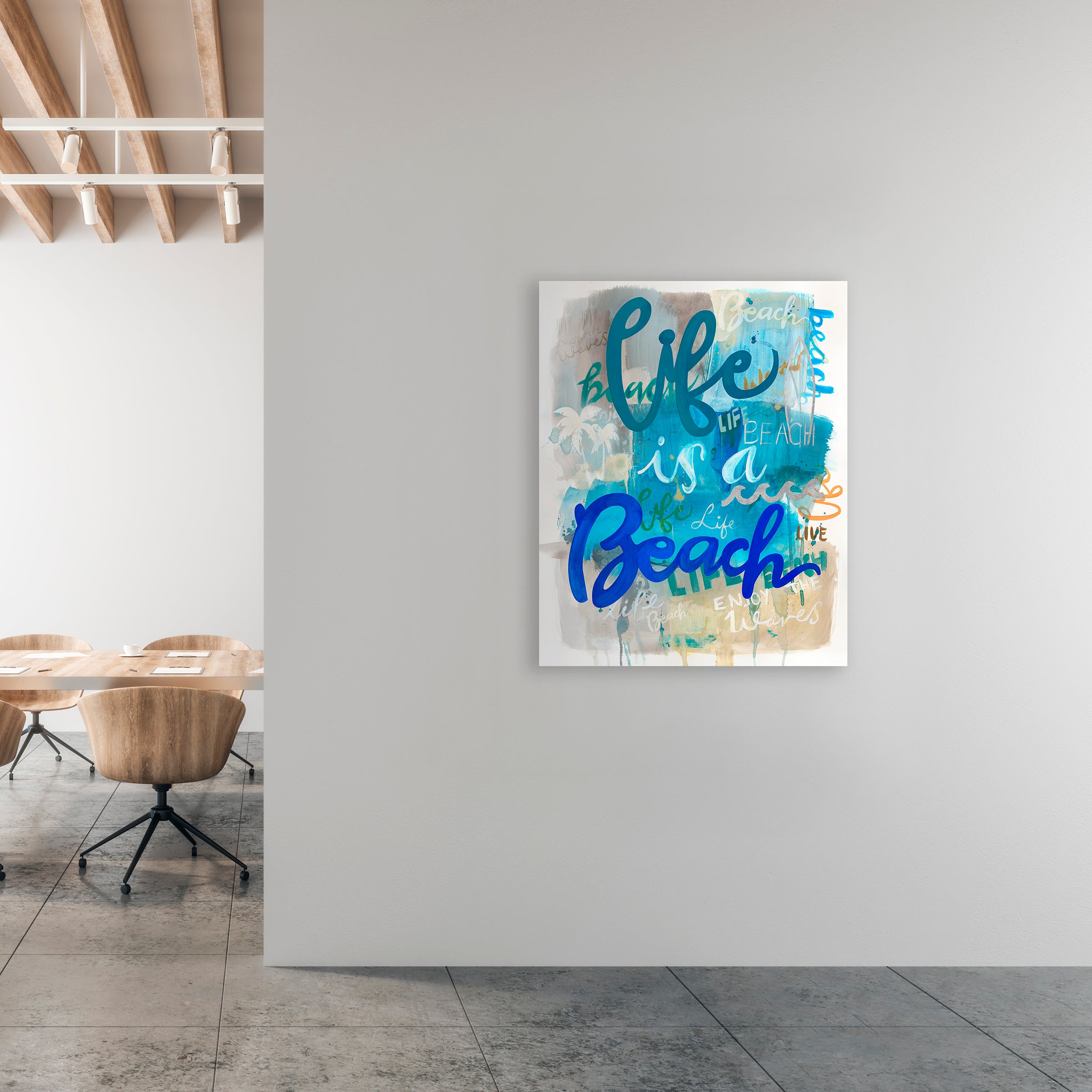 Embrace the carefree philosophy of coastal living with "Life is a Beach." This artwork distills the essence of seaside escape into a single image, evoking the sound of waves, the warmth of the sun, and the simplicity of a day by the water. Its unframed canvas invites you to dream of sandy toes and ocean breezes, offering a timeless portal to peace and relaxation.