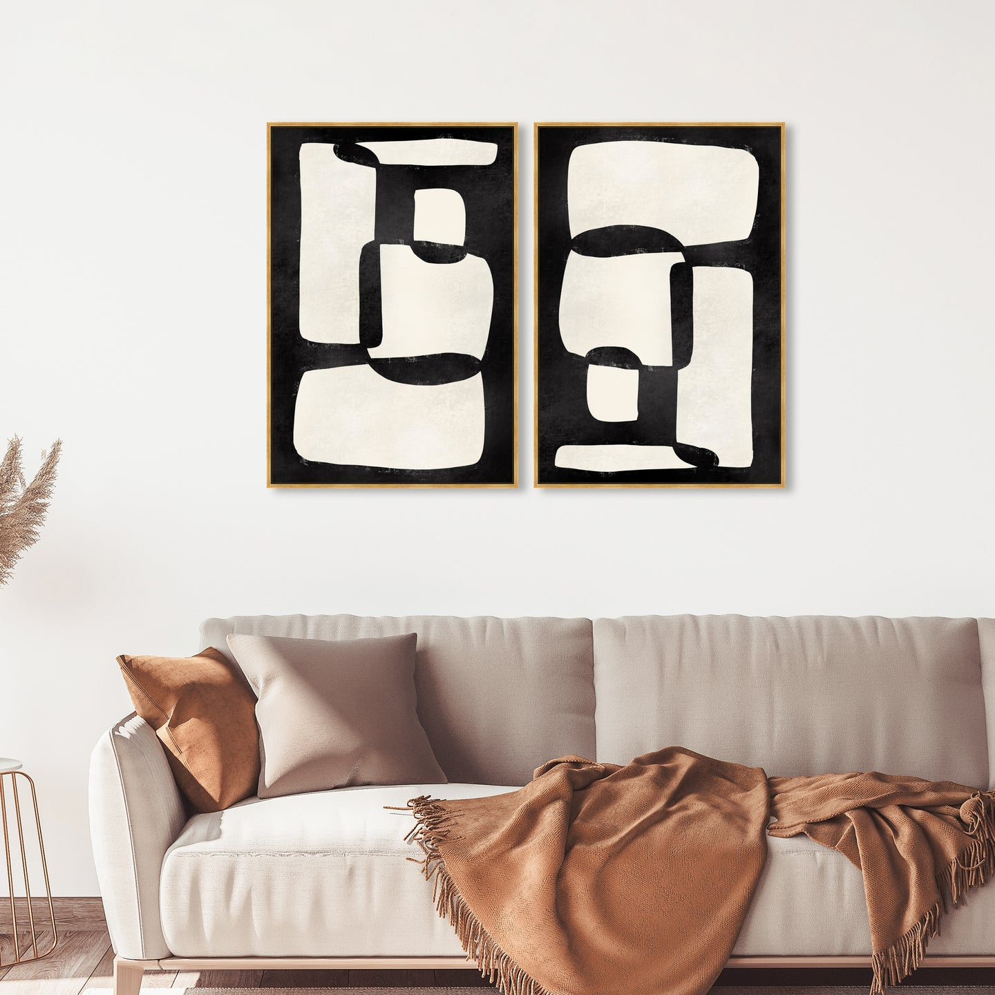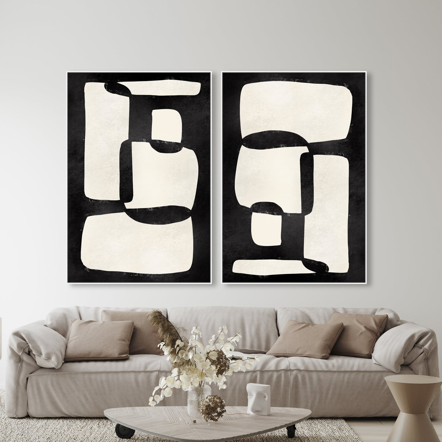 Enhance your wall decor with the contemporary charm of “Black and White Code – Set of 2.” Featuring a refined mix of black and cream abstract design, this art set adds a bold yet balanced touch to your living room or office. Its modern aesthetic and clean lines make it a versatile choice for any space. Pair it with other pieces from our Modern collection to create a cohesive and stylish gallery wall.