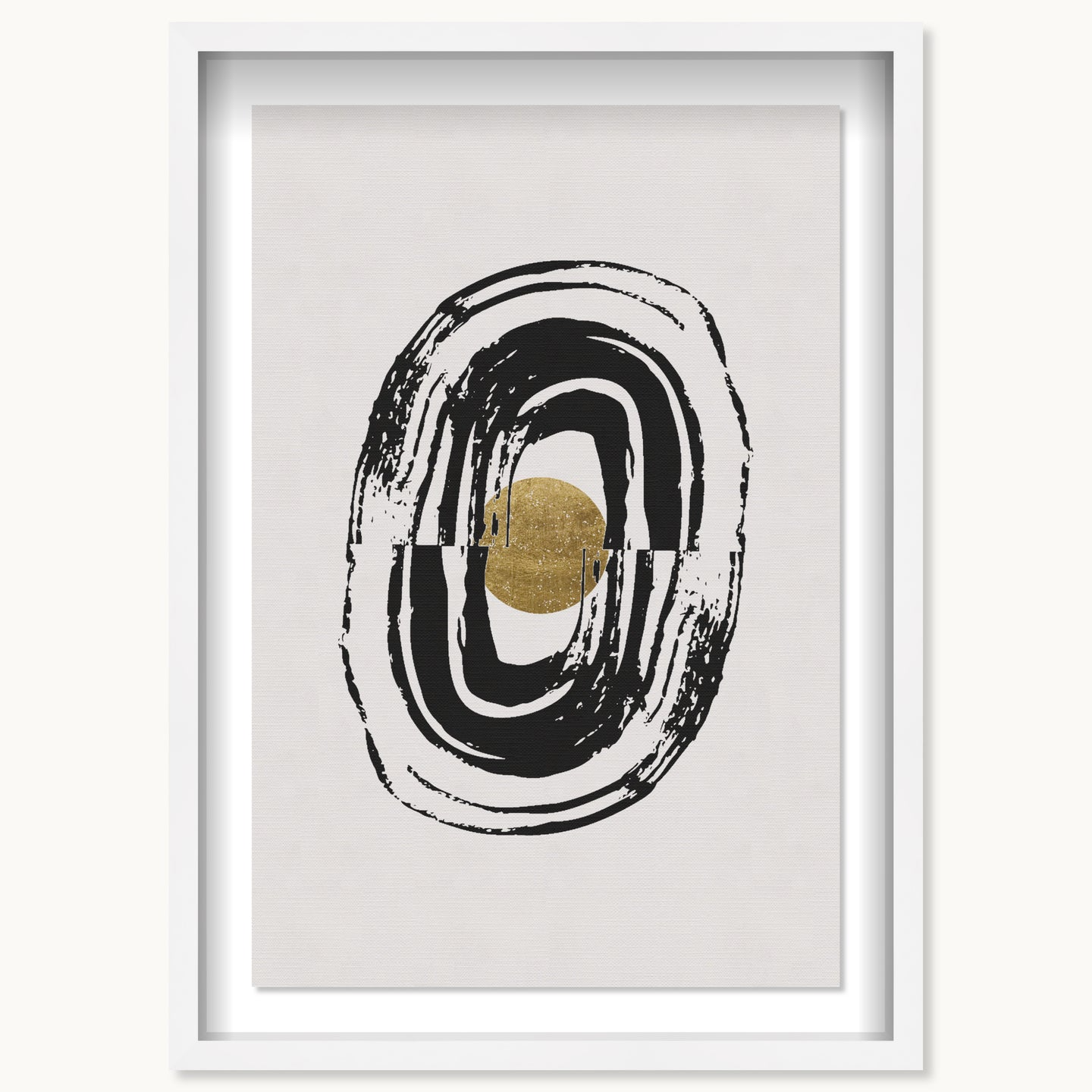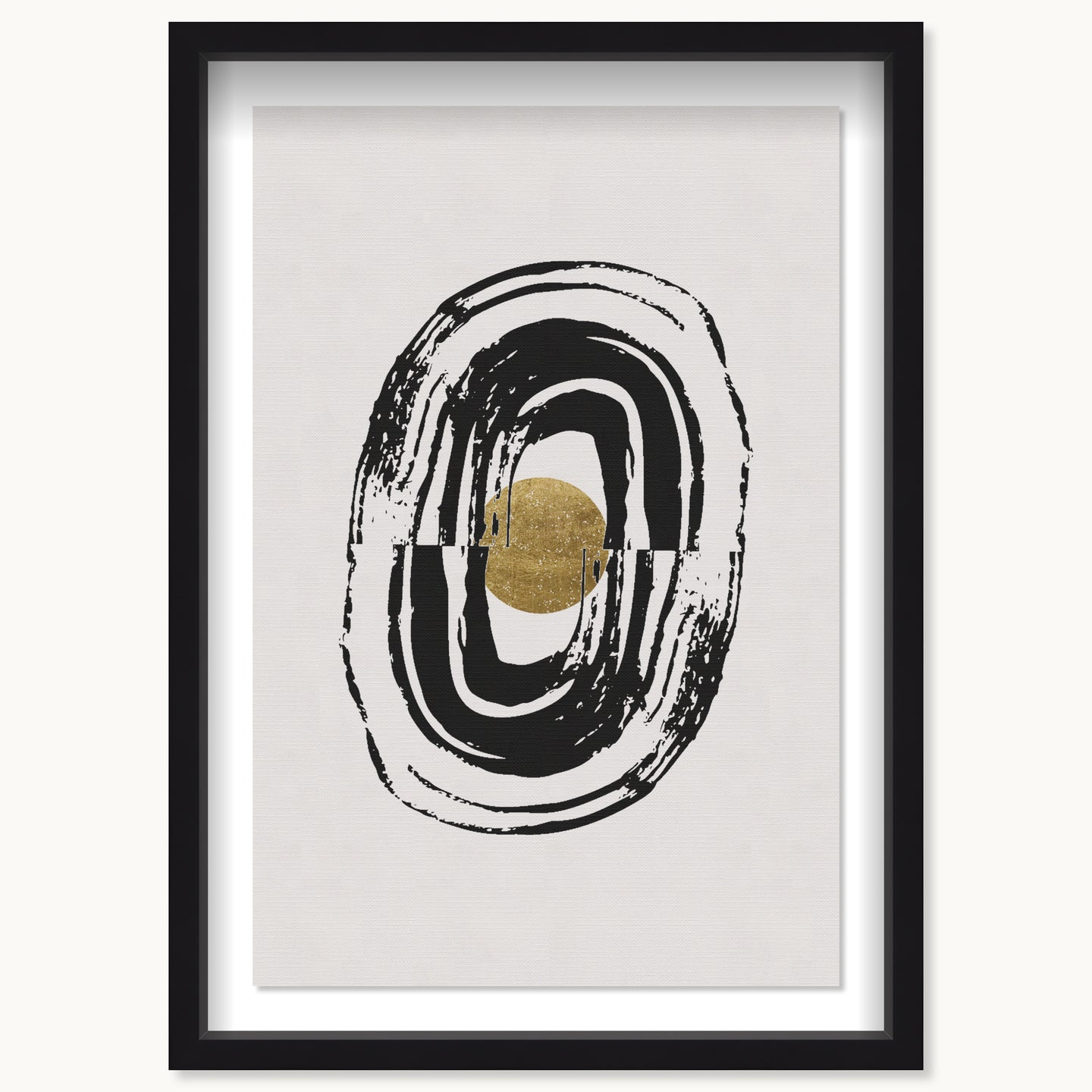 Bring a modern touch to your space with the Motion in Gold IV print. Featuring a bold black and beige abstract design with hints of gold, this artwork makes a statement in any living room or office. Display it on its own, pair it with a matching piece, or mix with our minimalist collection to create a stylish gallery wall.