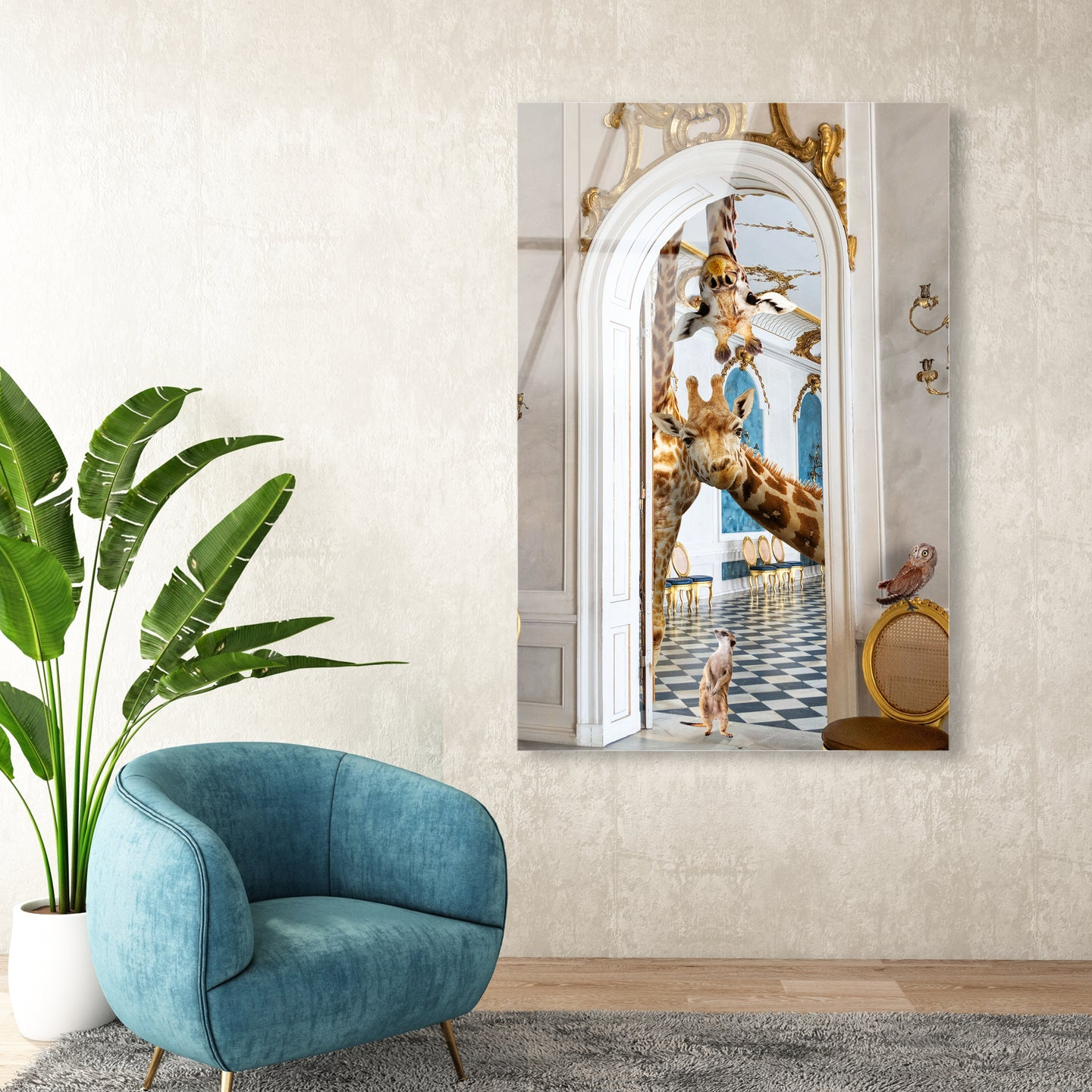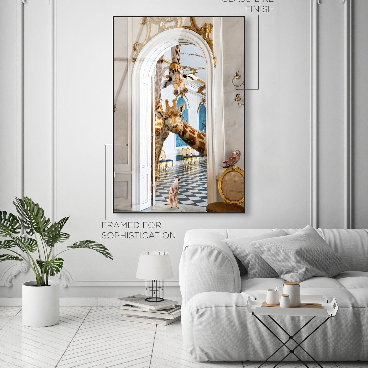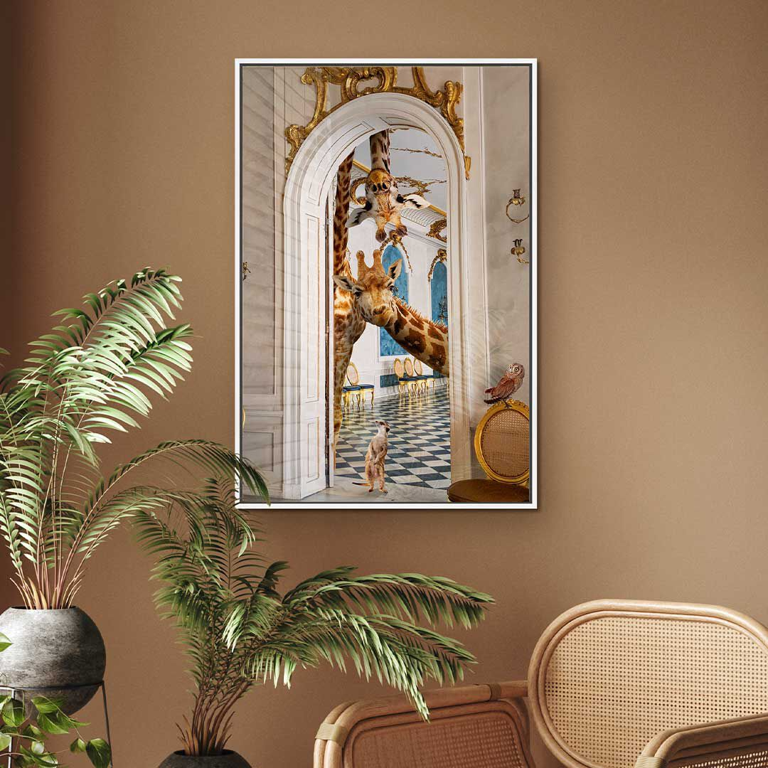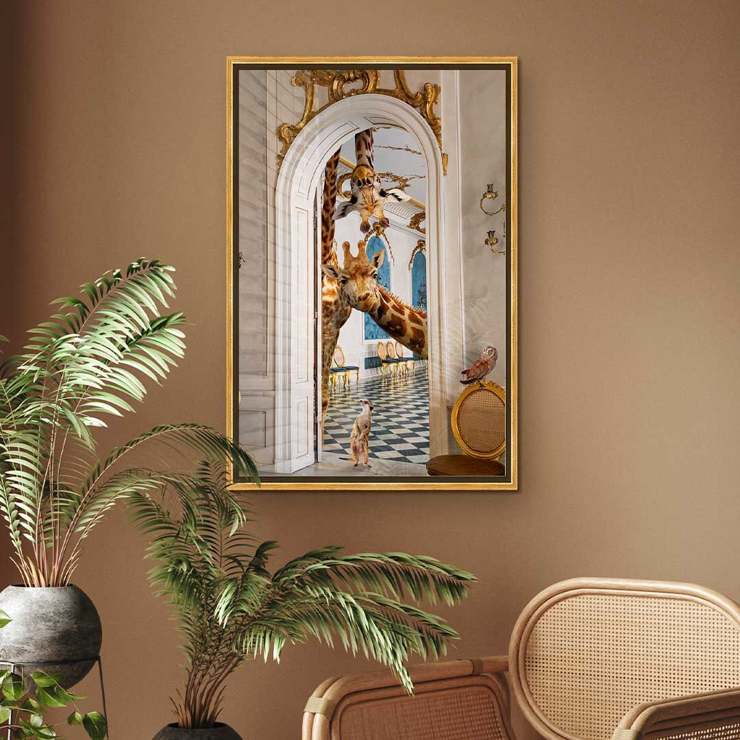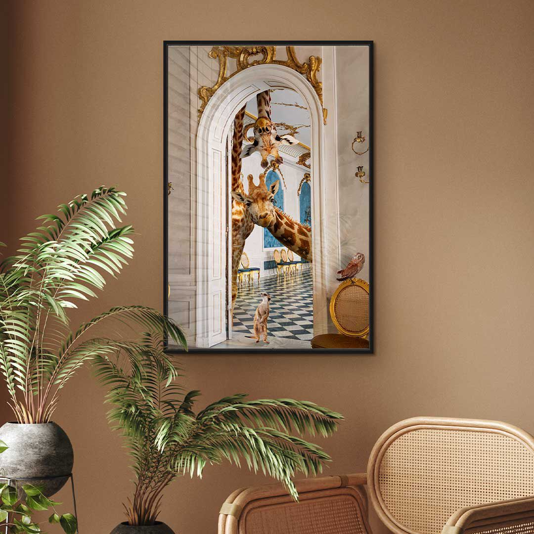 This striking wall art captures the majesty of wildlife through masterful composition and refined execution. 'Observing Giraffes' merges natural imagery with contemporary design sensibilities, creating a sophisticated statement piece that transcends seasonal trends. The meticulous craftsmanship and nuanced detailing establish it as a distinguished addition to any interior space, delivering enduring visual impact. Select the largest available dimensions to fully appreciate the work's commanding presence and artistic depth.