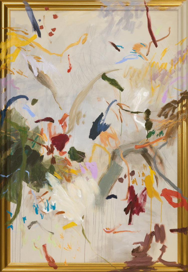 This large-format, ready-to-hang piece is a high-quality giclee print on canvas, hand-stretched over a sturdy wooden frame. Featuring a pre-installed hanging system, it arrives ready to bring its fresh palette of soft greens, budding pinks, and clear blues into your home. This contemporary wall art is perfect for washing living areas, sunrooms, or offices with uplifting, optimistic energy.