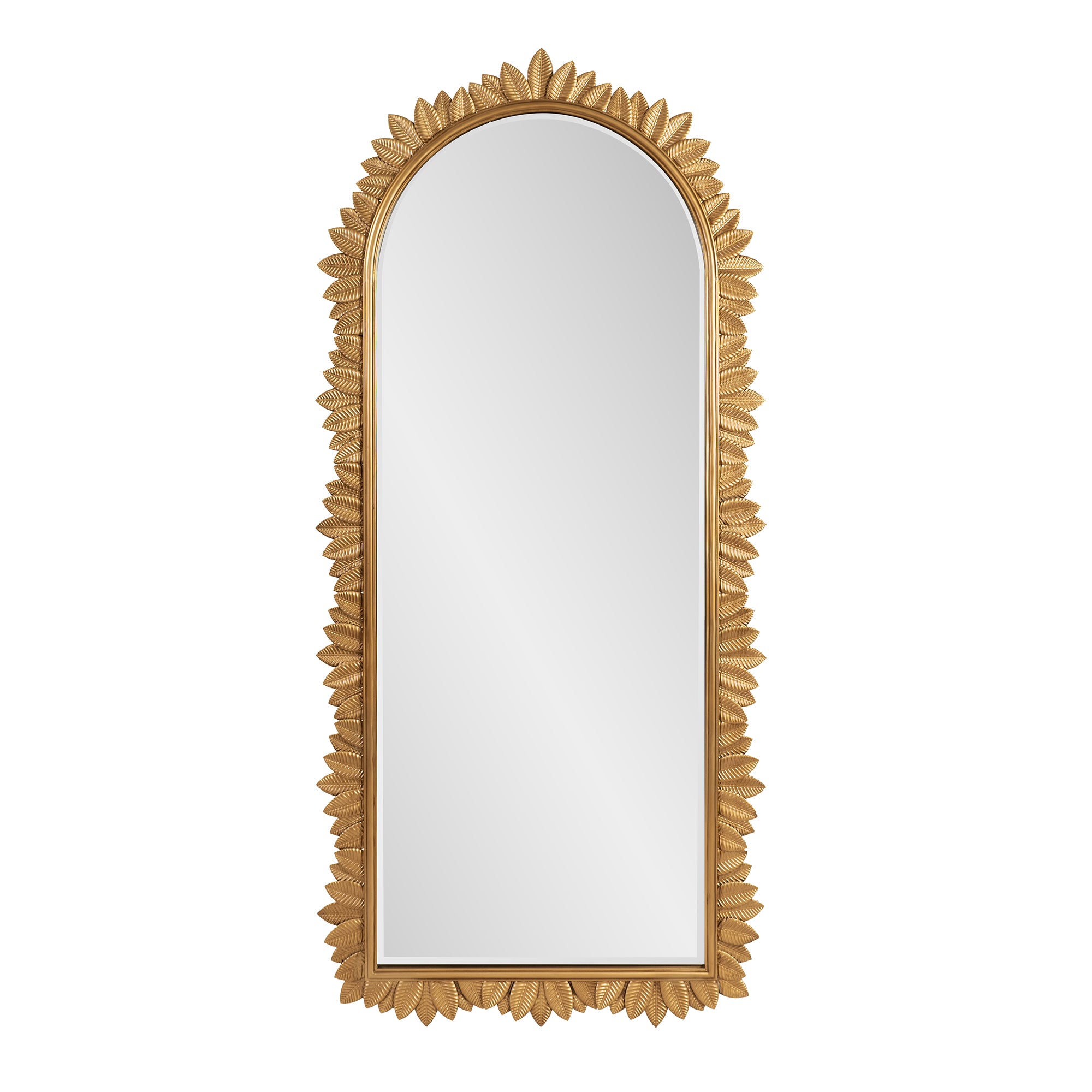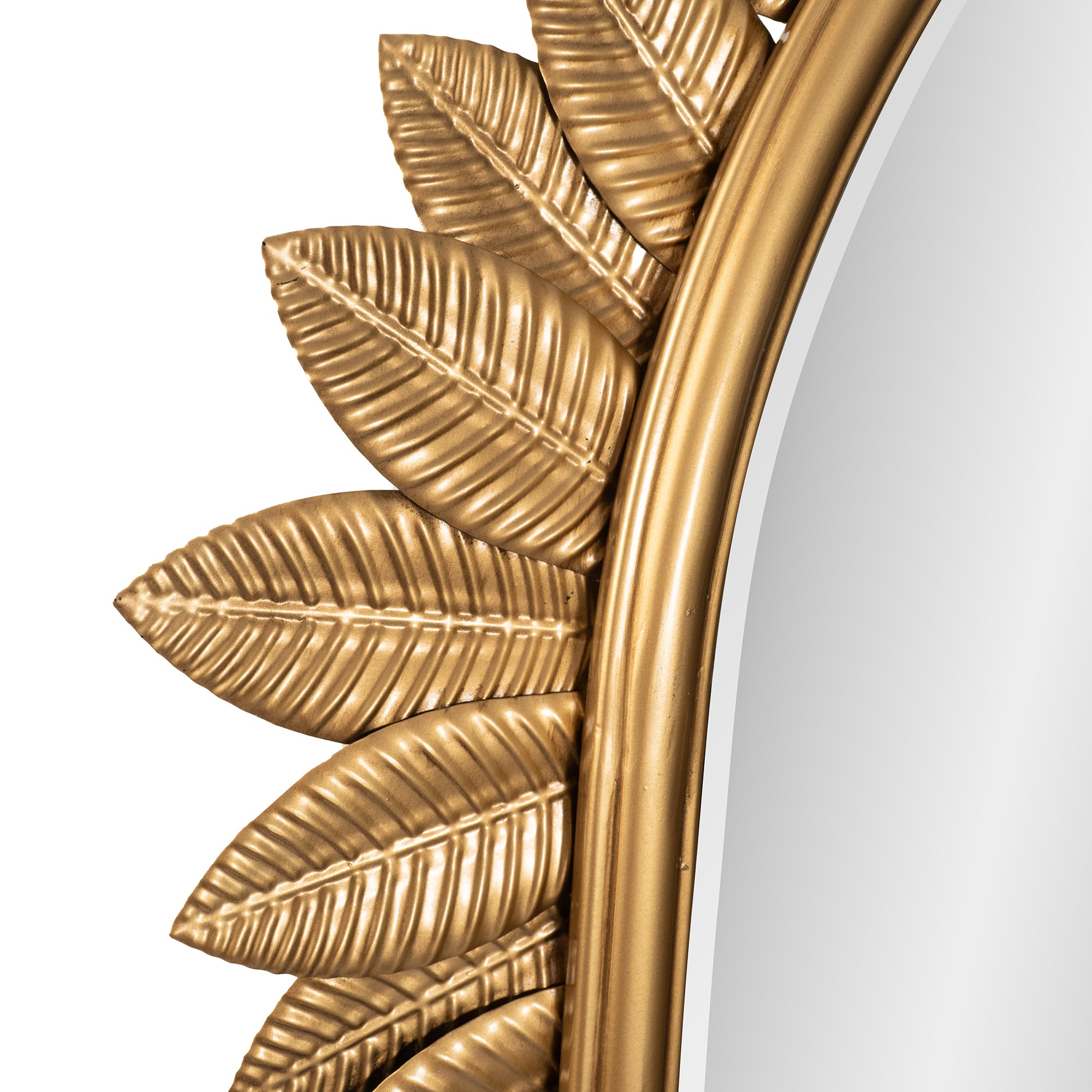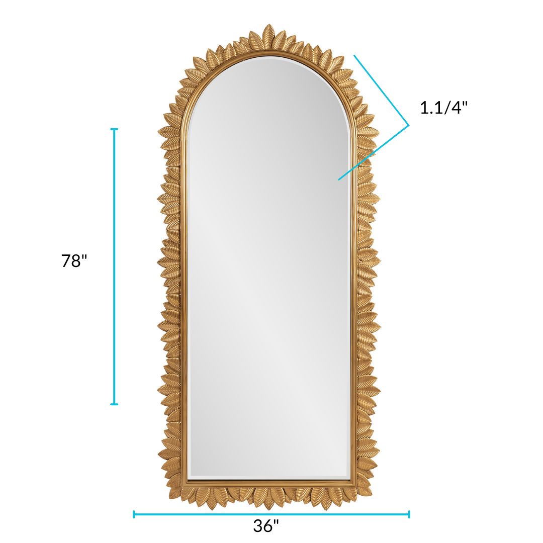 An architectural statement piece that marries natural inspiration with polished design, this floor mirror features an elegant arched frame adorned with meticulously sculpted golden leaves. Its generous vertical proportions and curved silhouette enhance spatial perception while introducing luminosity to entryways, bedrooms, and gathering spaces. The interplay between the organic leaf detailing and the mirror's refined geometry creates a sophisticated aesthetic that commands attention without overwhelming your décor scheme.