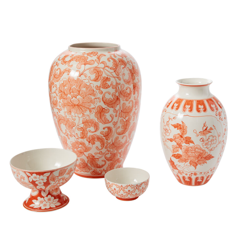Coral Chinoiserie Compote Stoneware