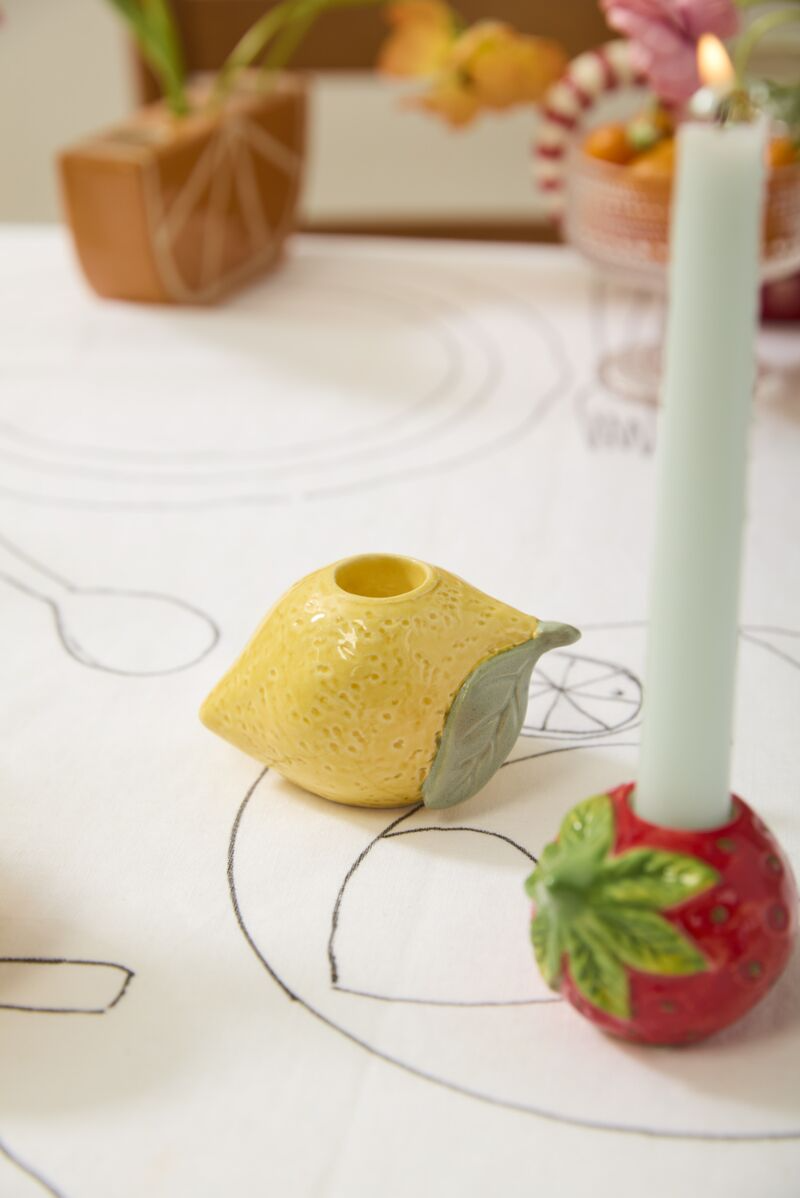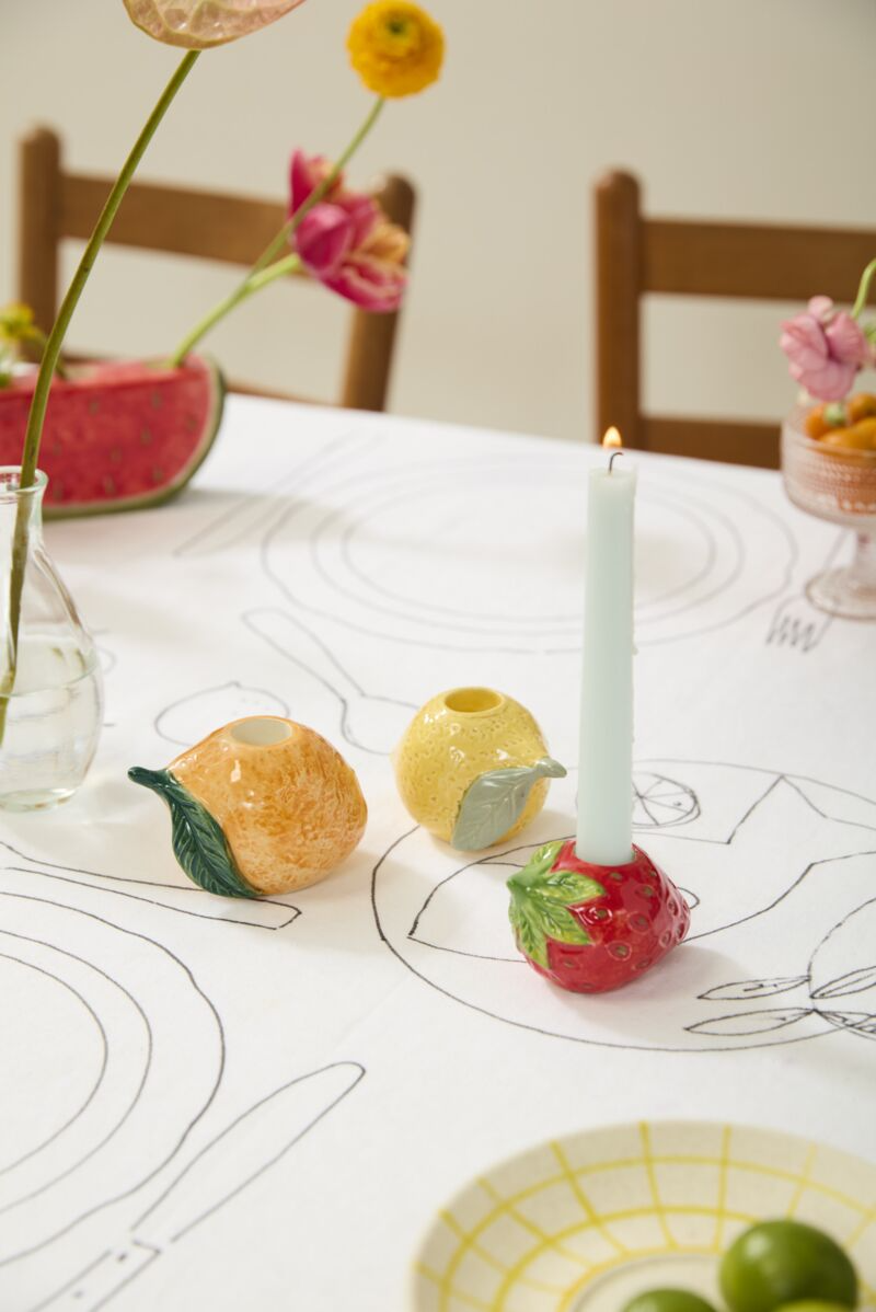Bring vibrant energy to your culinary spaces with this whimsical candleholder from the Fruit Delight Collection. Its playful design infuses kitchens, dining areas, and event venues with cheerful color and personality. Mix and match pieces from the collection to create a cohesive, sun-inspired aesthetic that celebrates seasonal style with sophistication and charm.