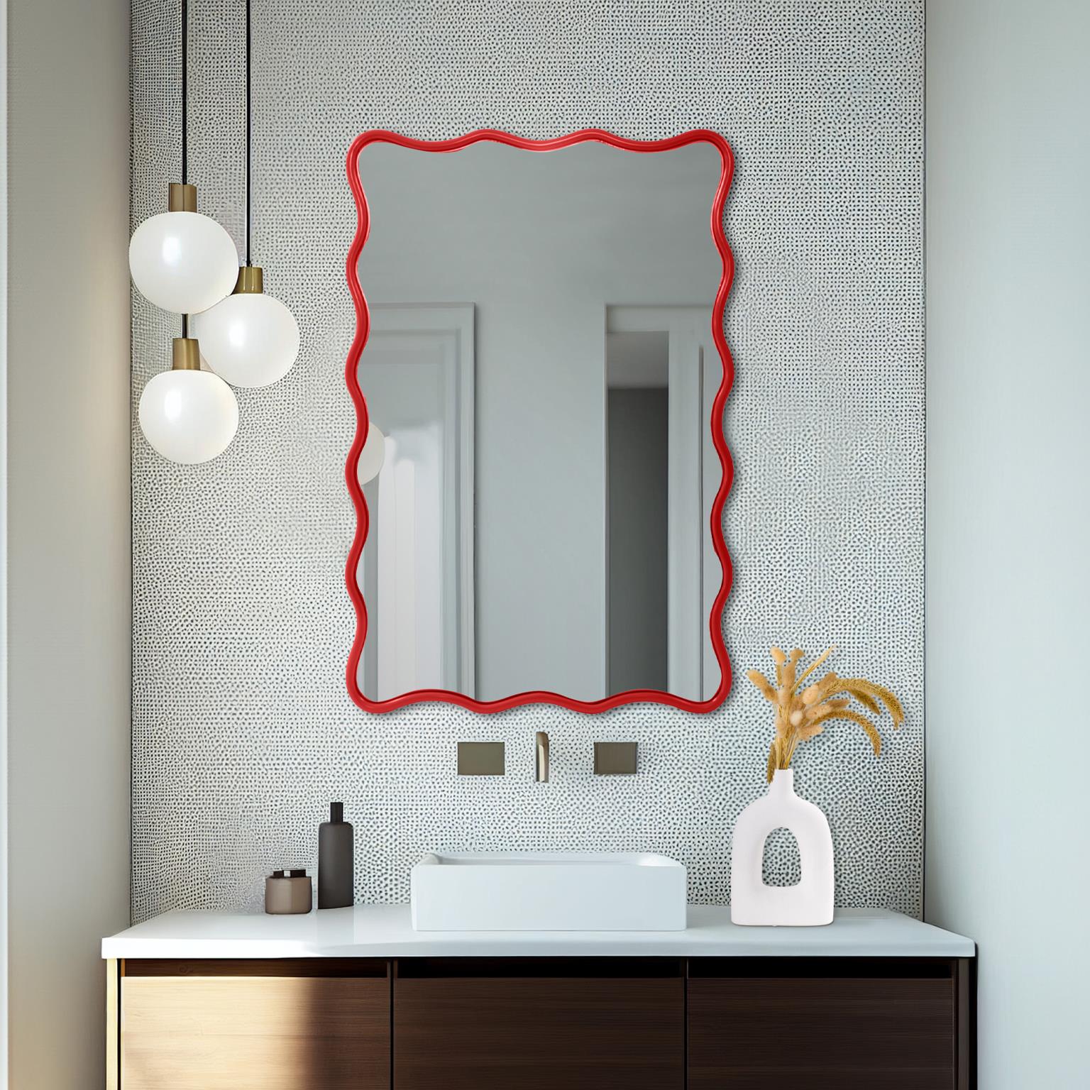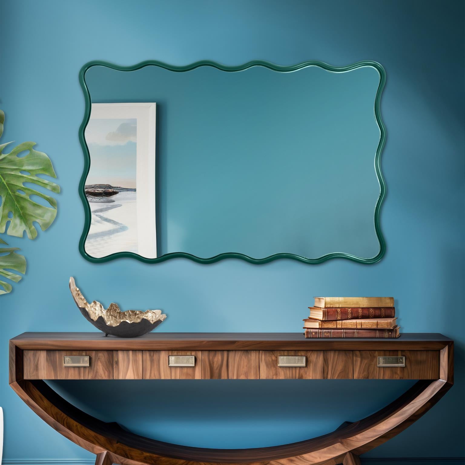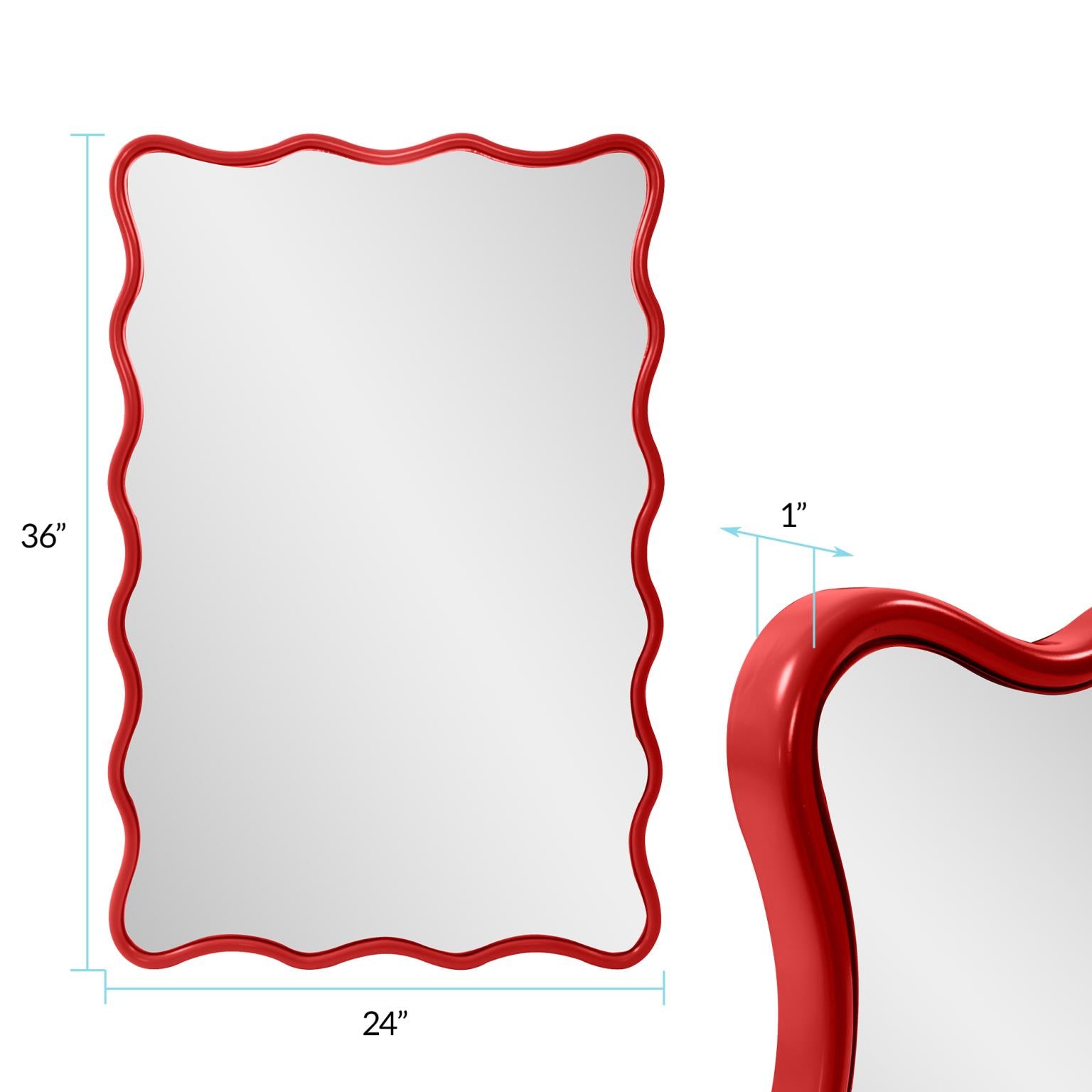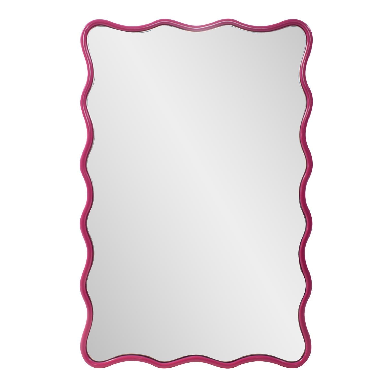 Its standout feature is a dynamic, scalloped "wavy" frame rendered in an electrifying, vibrant color that instantly commands attention and radiates enthusiasm. This undulating silhouette creates a captivating sense of movement and artistic whimsy, making the mirror itself a kinetic piece of art. Designed for ultimate versatility, it can be hung both vertically and horizontally, allowing you to customize its flow to perfectly suit your wall space and aesthetic vision.