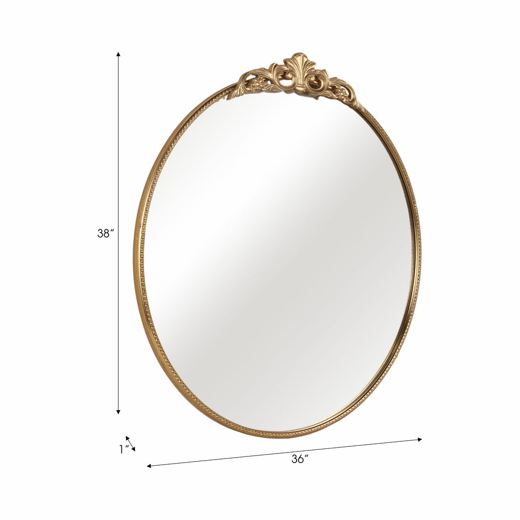 Elevate your space with the exquisite allure of the Sagebrook Home 36" FLEUR APPLIQUE ROUND MIRROR. This elegant piece, where classic meets modernity, boasts a stunning gold-finished iron frame with intricate resin detailing, creating a luxurious statement in any room. Crafted from the finest glass, iron, and resin, this mirror's radiant glow and perfect dimensions (36" Diameter) promise to harmonize with your decor while reflecting your unique taste. Ideal for those seeking an opulent addition to their home, this mirror embodies sophistication. Discover this must-have accessory in our Mirrors collection and complete your home's transformation today.