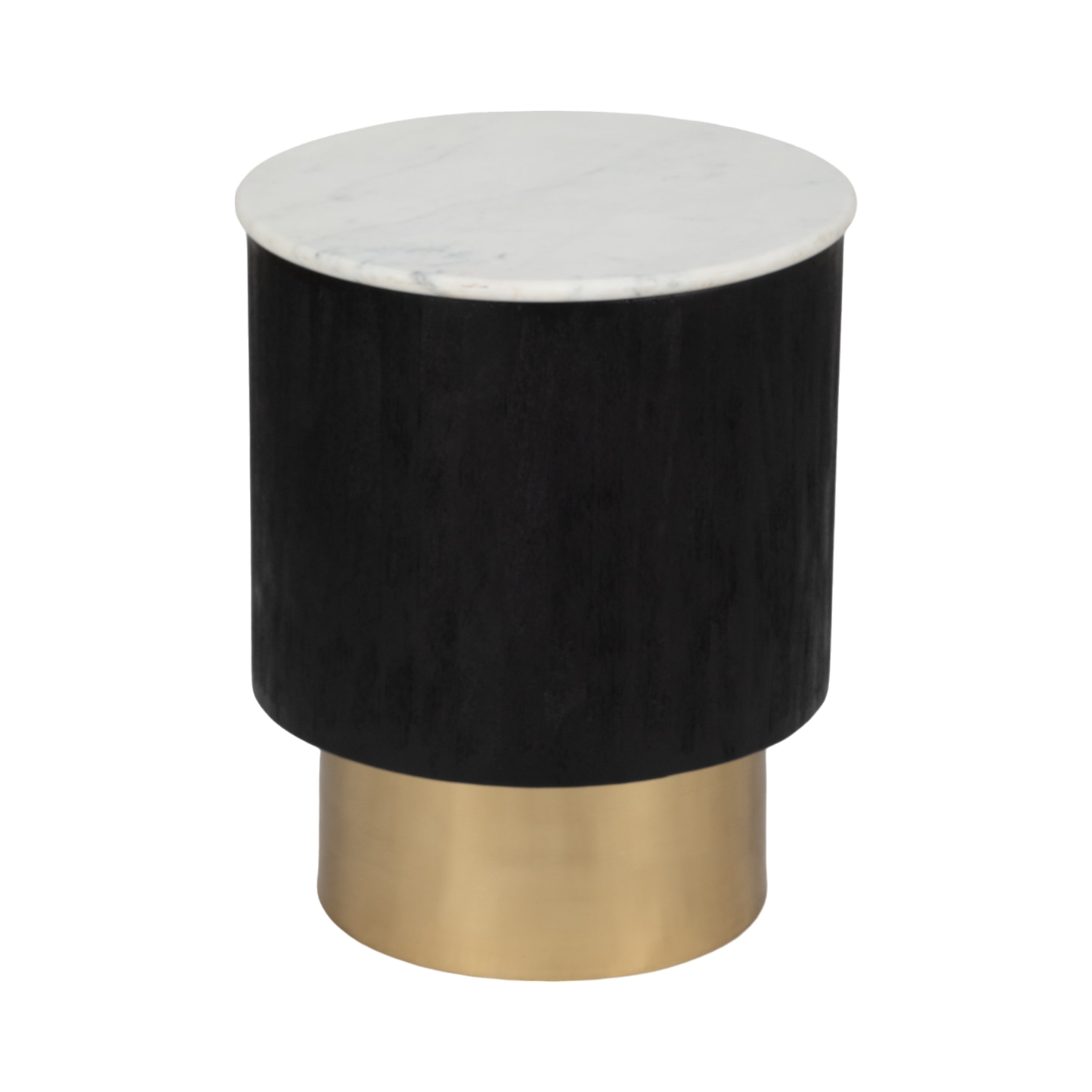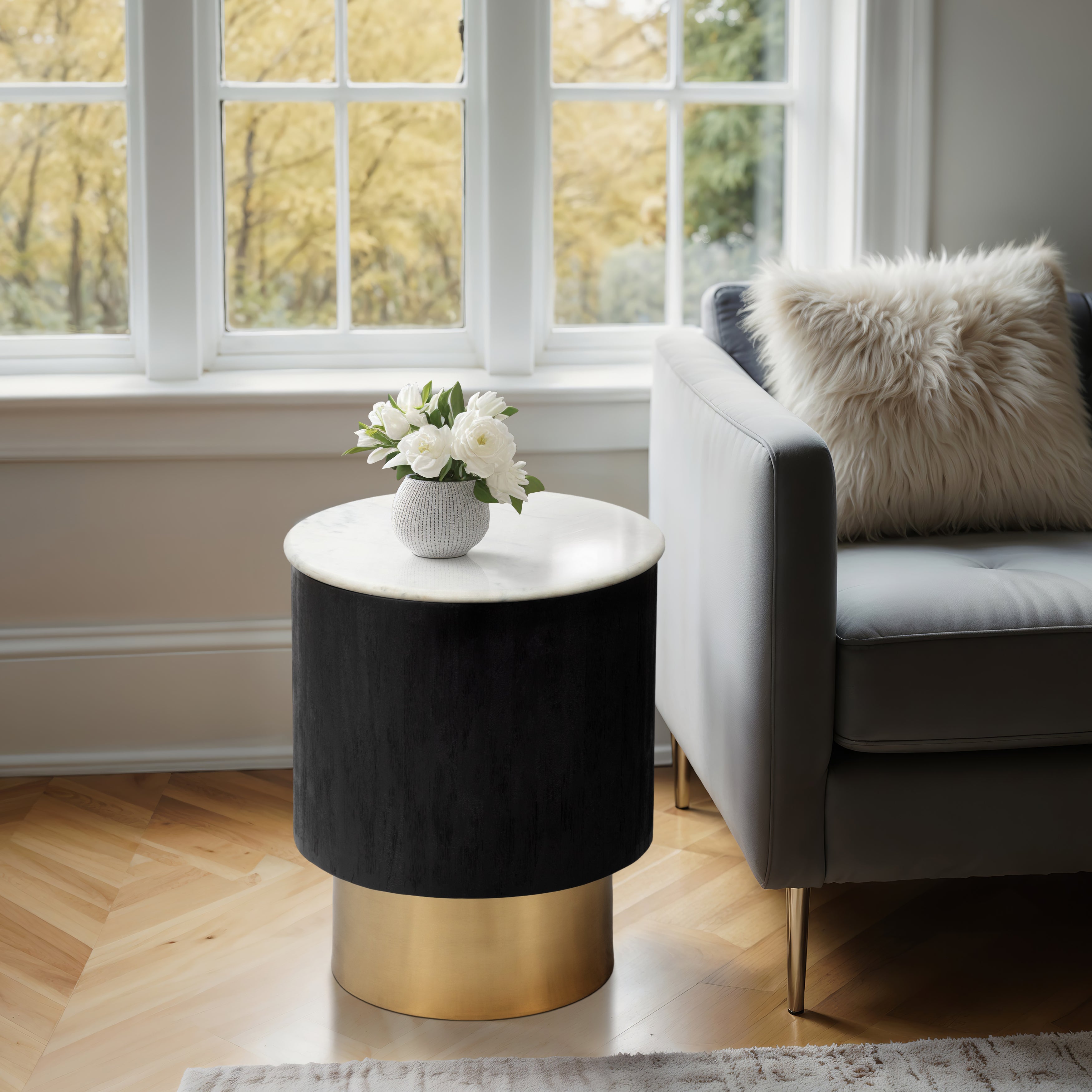 Embrace a new standard of modern elegance with the Madison Accent Table, where exceptional design meets everyday function. This distinguished piece artfully unites a luxurious, veined marble top with a robust solid wood base, seamlessly connected by refined, slender metal accents. Finished in a deep, rich black, the table creates a cohesive and striking silhouette that commands attention.