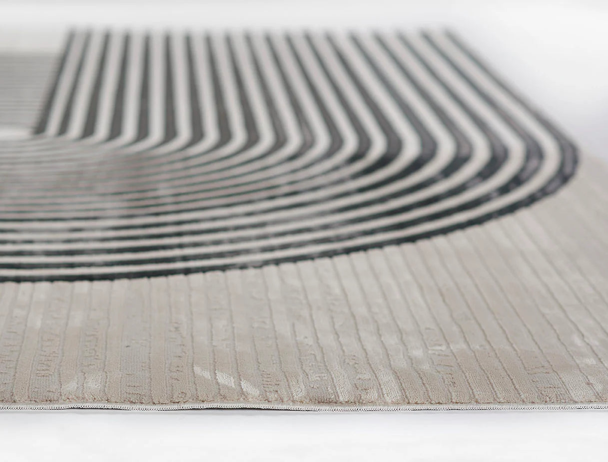 This striking black and white abstract rug features a captivating spiral design that serves as a bold focal point in any room. Crafted from durable polyester and polypropylene fibers, it combines style with resilience, making it perfect for high-traffic areas. With a low profile pile height of 0.25 inches, it offers a comfortable touch underfoot while enhancing your home décor.