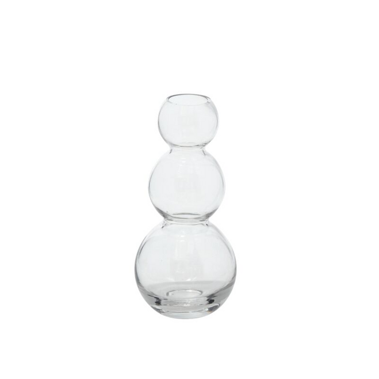 Add a bit of modern whimsy to your floral displays with the mouth-blown clear glass Stacked Bubble Vase, featuring unique stacked spheres for a playful, trendy bubble look. With its thick glass, this weighty flower vase is a florist staple & an on-trend wedding & event vessel but also transitions easily for everyday use.