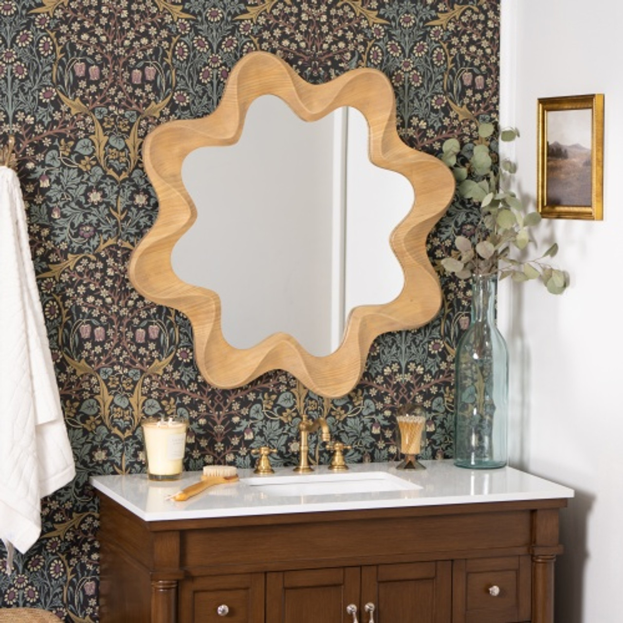 Transform your interior with the Whimsical Star Wall Mirror, a striking accent piece that merges artistic design with practical functionality. Featuring an undulating star silhouette crafted from natural wood, this mirror delivers contemporary elegance with organic warmth. The sculptural frame maximizes light reflection while commanding visual interest in entryways, living spaces, and bedrooms alike. Its versatile aesthetic complements both minimalist and bohemian design schemes effortlessly. Position it as a focal point above furniture or integrate it into a curated gallery arrangement—this mirror elevates any room from ordinary to extraordinary.