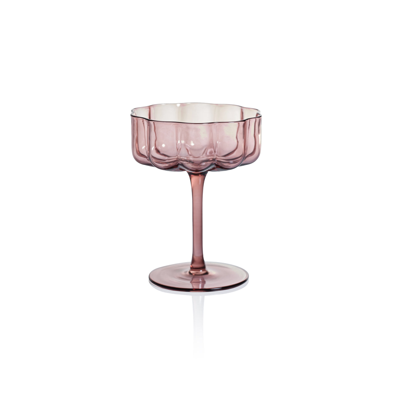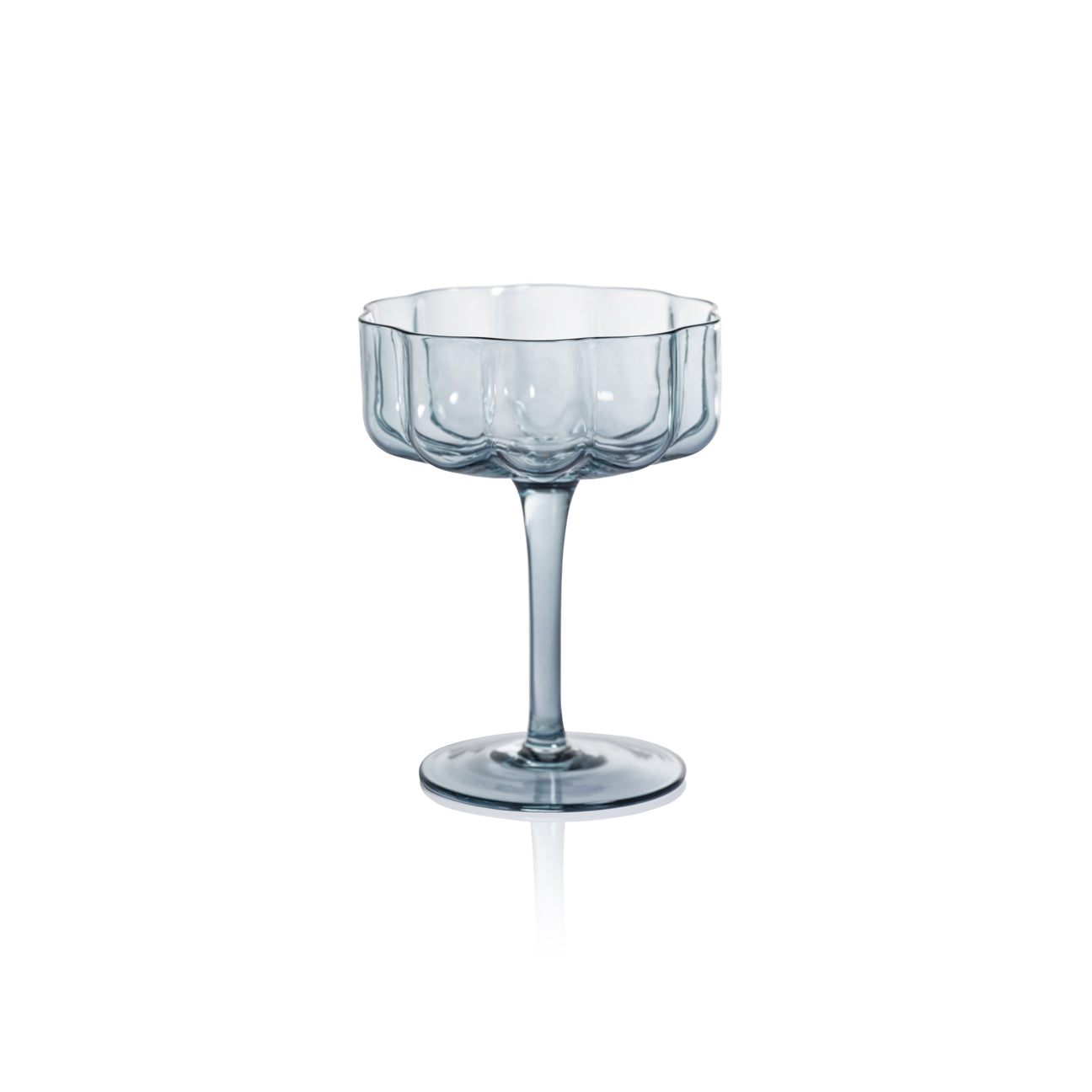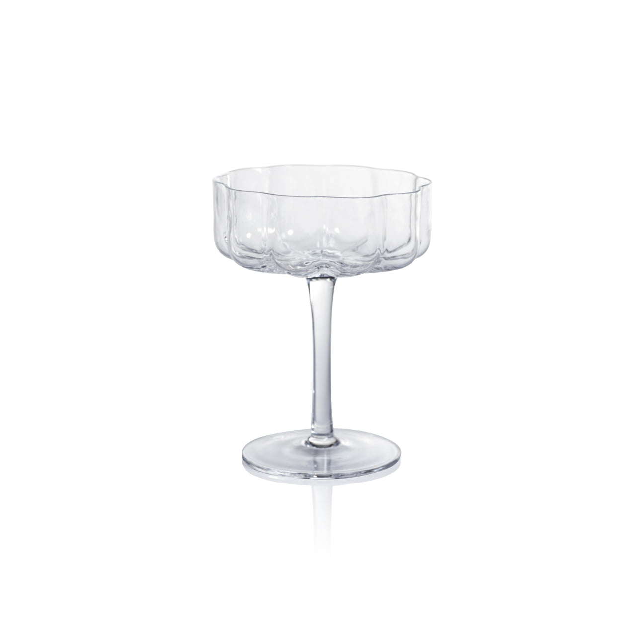 Meticulously mouth-blown by skilled artisans, no two glasses are exactly alike, showcasing the delightful variations in form, thickness, and the subtle, organic charm that only handcrafting can impart. Presented in the timeless, graceful silhouette of a classic coupe, it is the perfect stage for champagne, artisan cocktails, or elegant desserts.