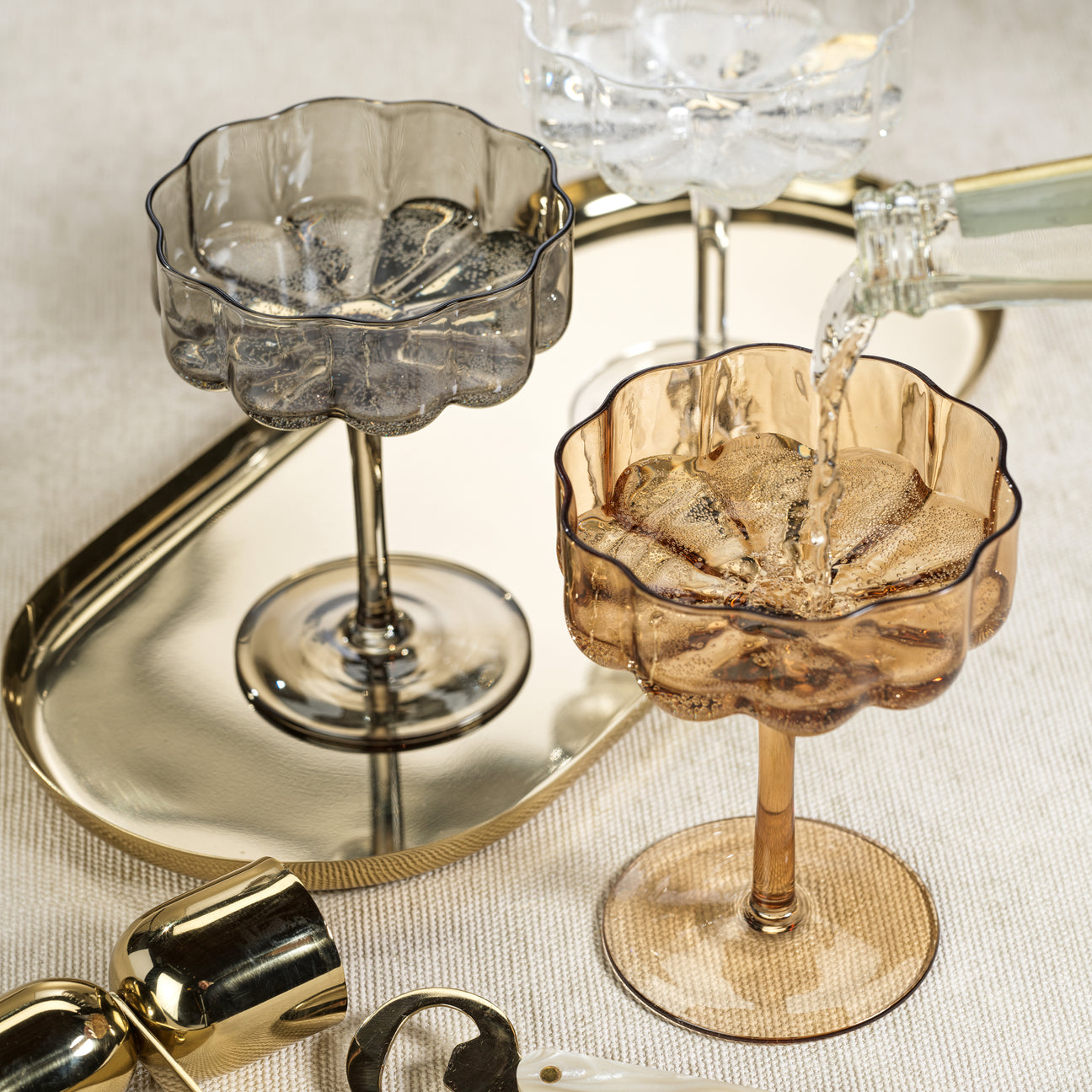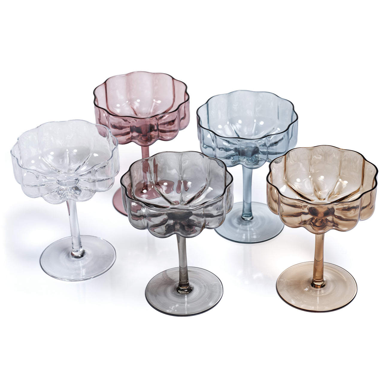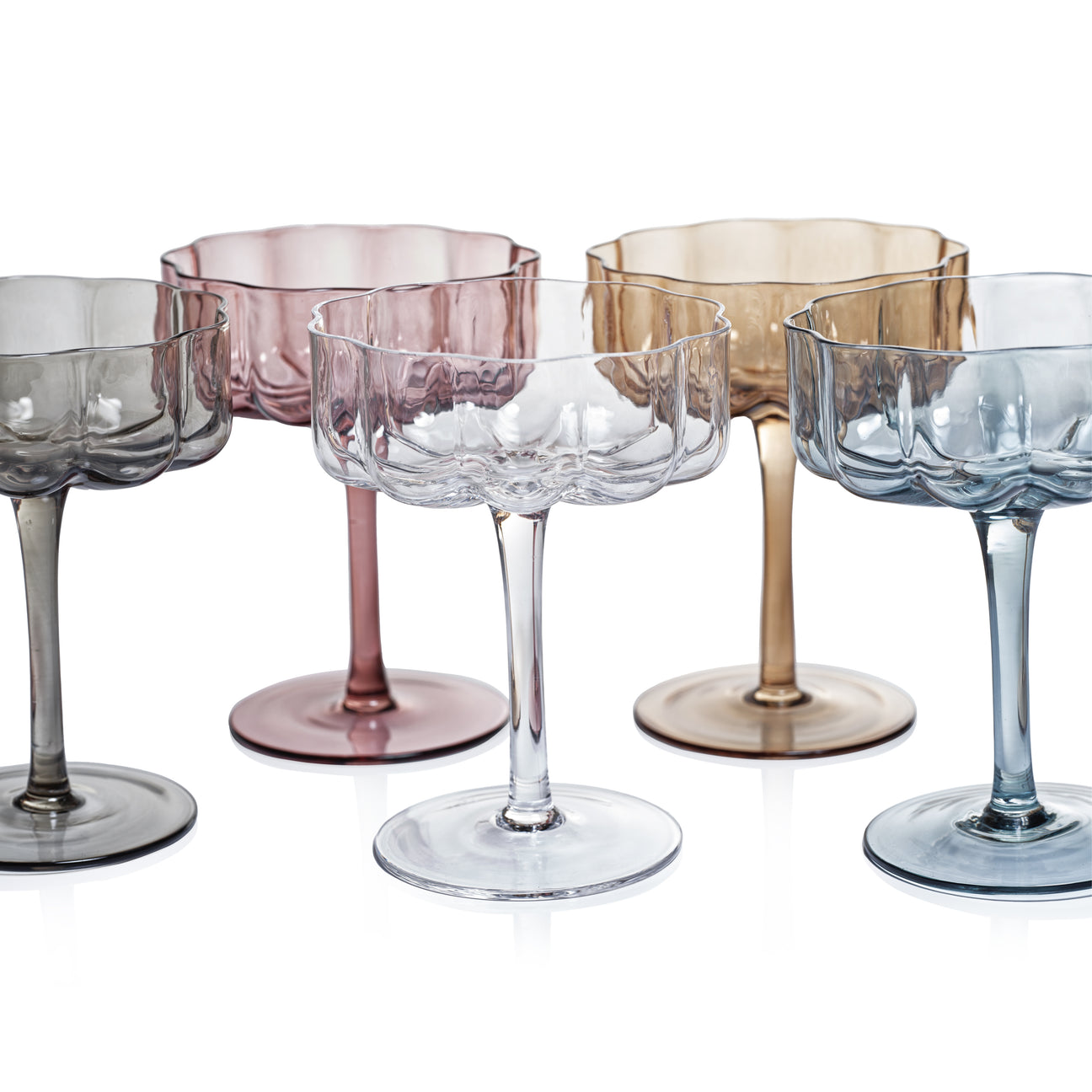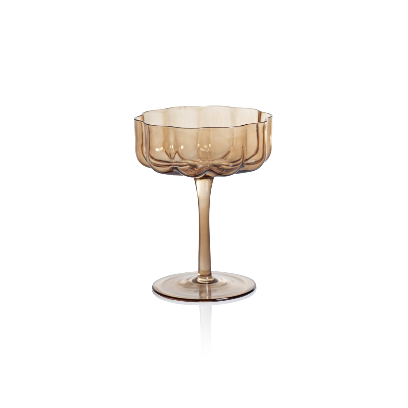 Meticulously mouth-blown by skilled artisans, no two glasses are exactly alike, showcasing the delightful variations in form, thickness, and the subtle, organic charm that only handcrafting can impart. Presented in the timeless, graceful silhouette of a classic coupe, it is the perfect stage for champagne, artisan cocktails, or elegant desserts.