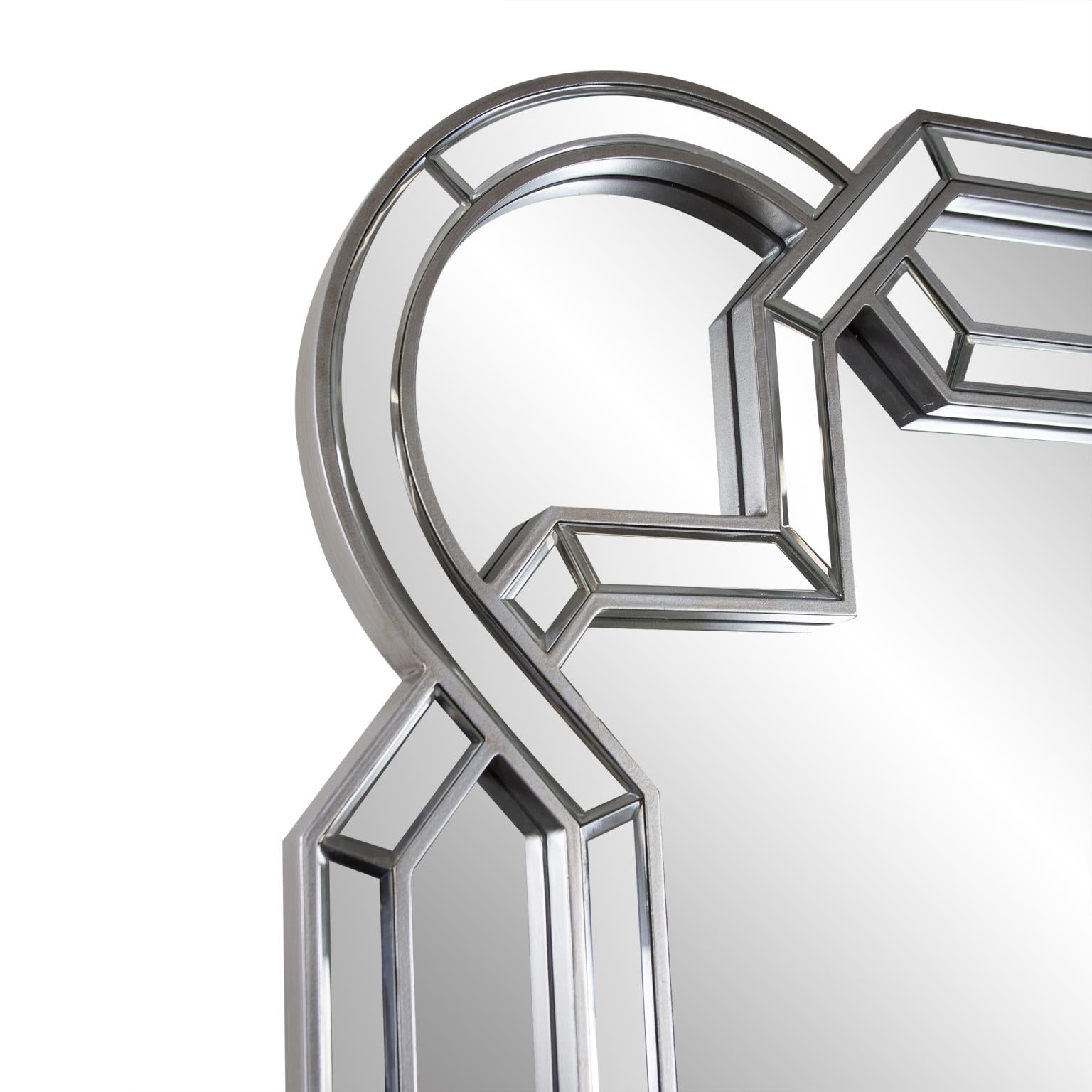 Its defining feature is a captivating scalloped octagonal silhouette, meticulously constructed from interlocking mirrored panels. This multi-faceted design creates a dazzling play of reflections and depth, making the mirror itself a dynamic, ever-changing work of art. Each panel is elegantly framed with a lustrous champagne silver leaf finish, adding a touch of warm, timeless opulence that complements both modern edge and classic grandeur.