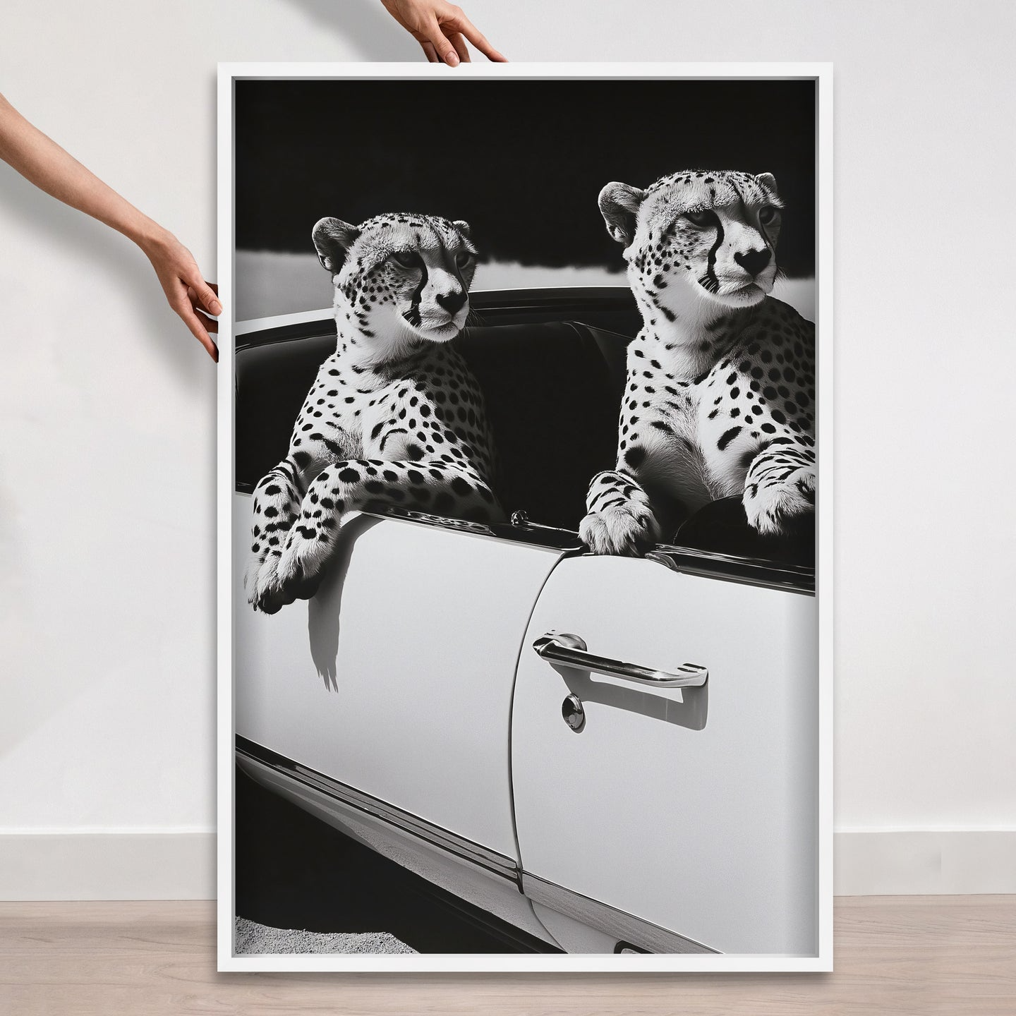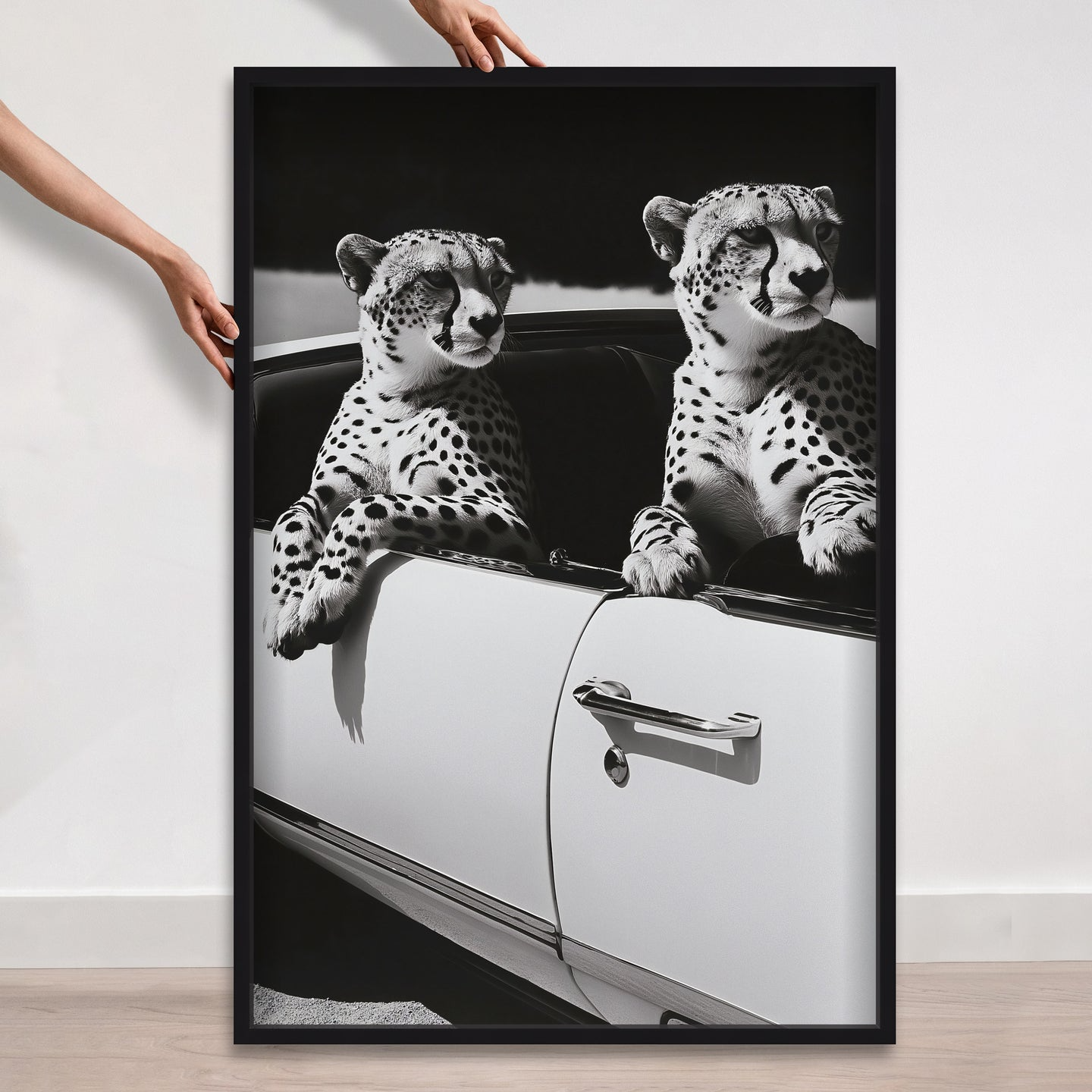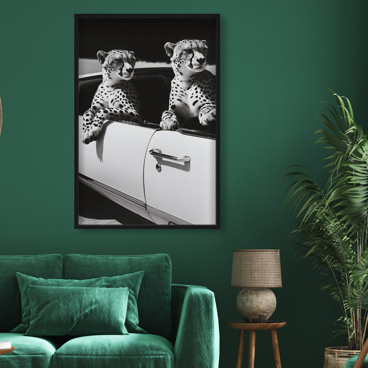 Striking and unmistakably stylish, this portrayal redefines classic wildlife photography with a contemporary, fashion-inspired edge. Featuring two cheetahs exuding effortless confidence, this black-and-white high-definition image brings bold contrast and sleek sophistication to any space. Perfectly suited for statement entryways or refined home offices, it merges timeless cool with a hint of rebellious attitude, reminiscent of classic car culture. Complement this piece with clean architectural lines, polished chrome accents, and subtle daring details for a truly impactful look.