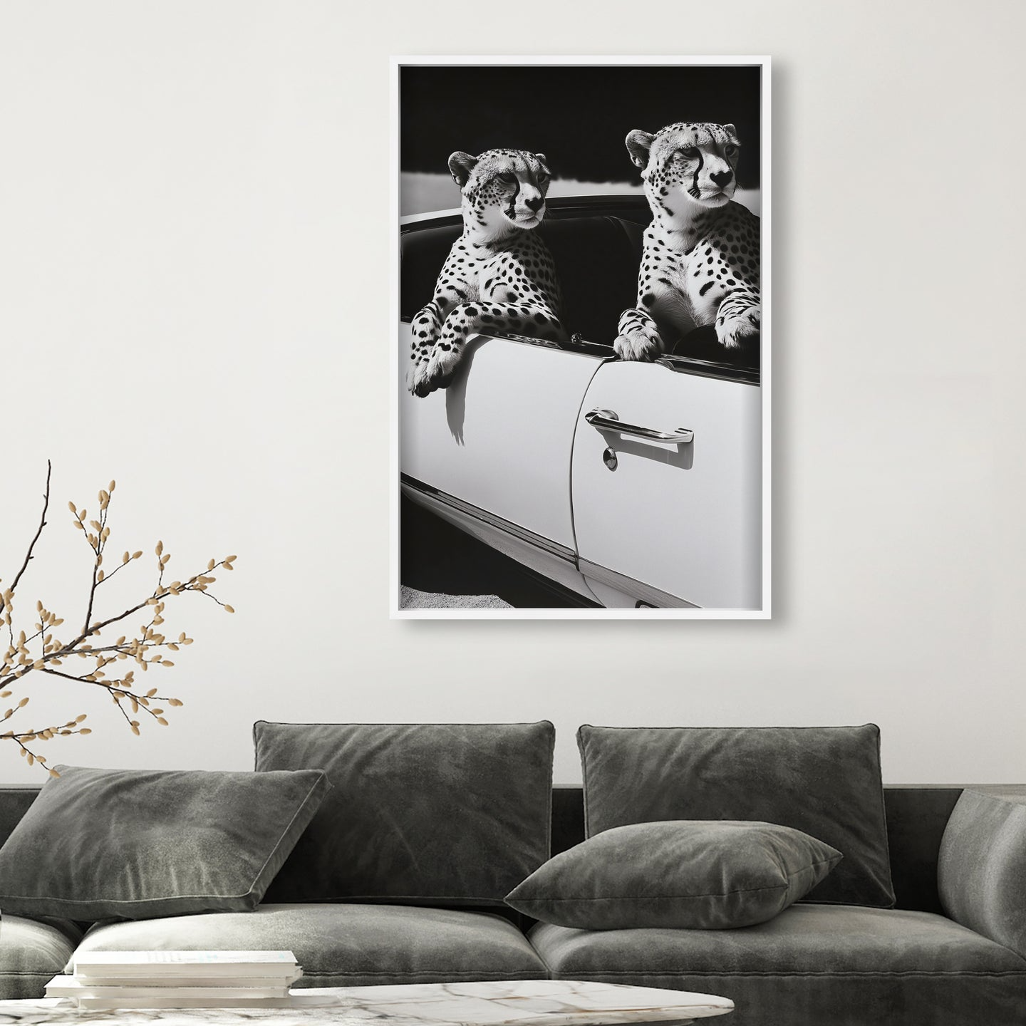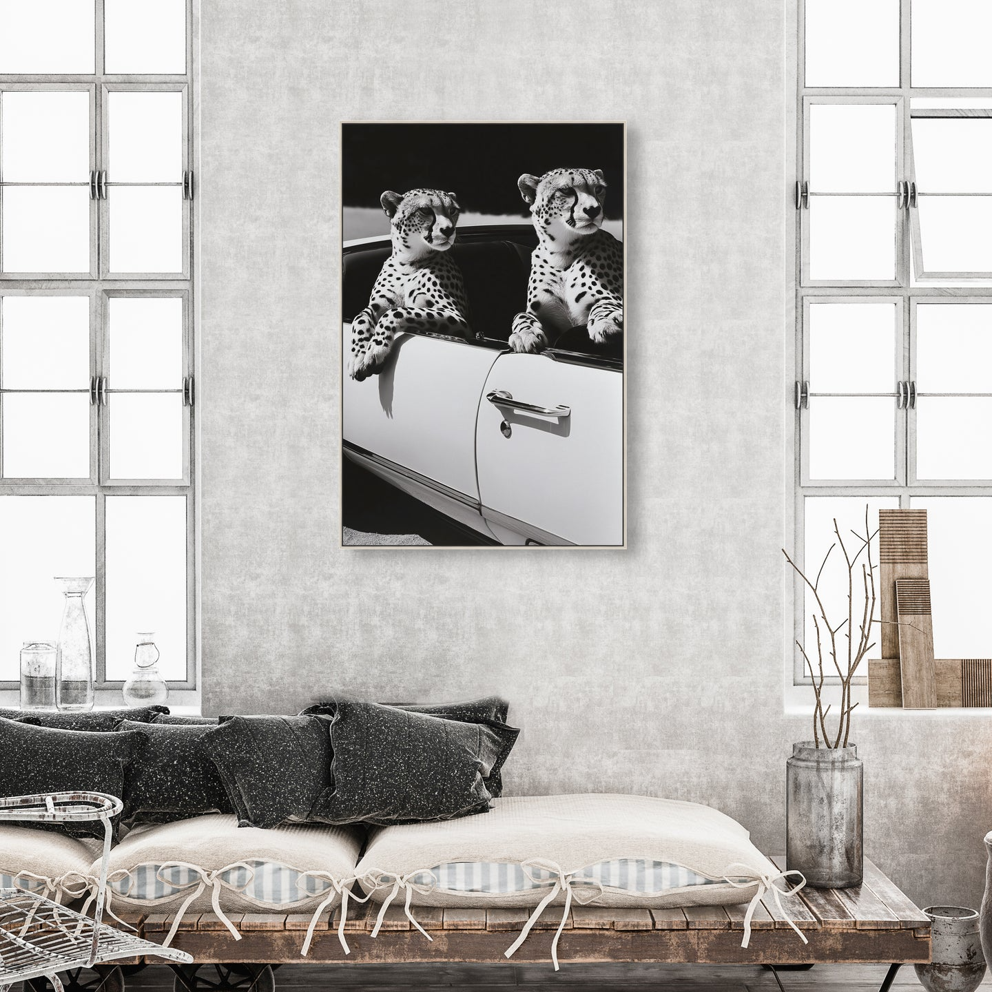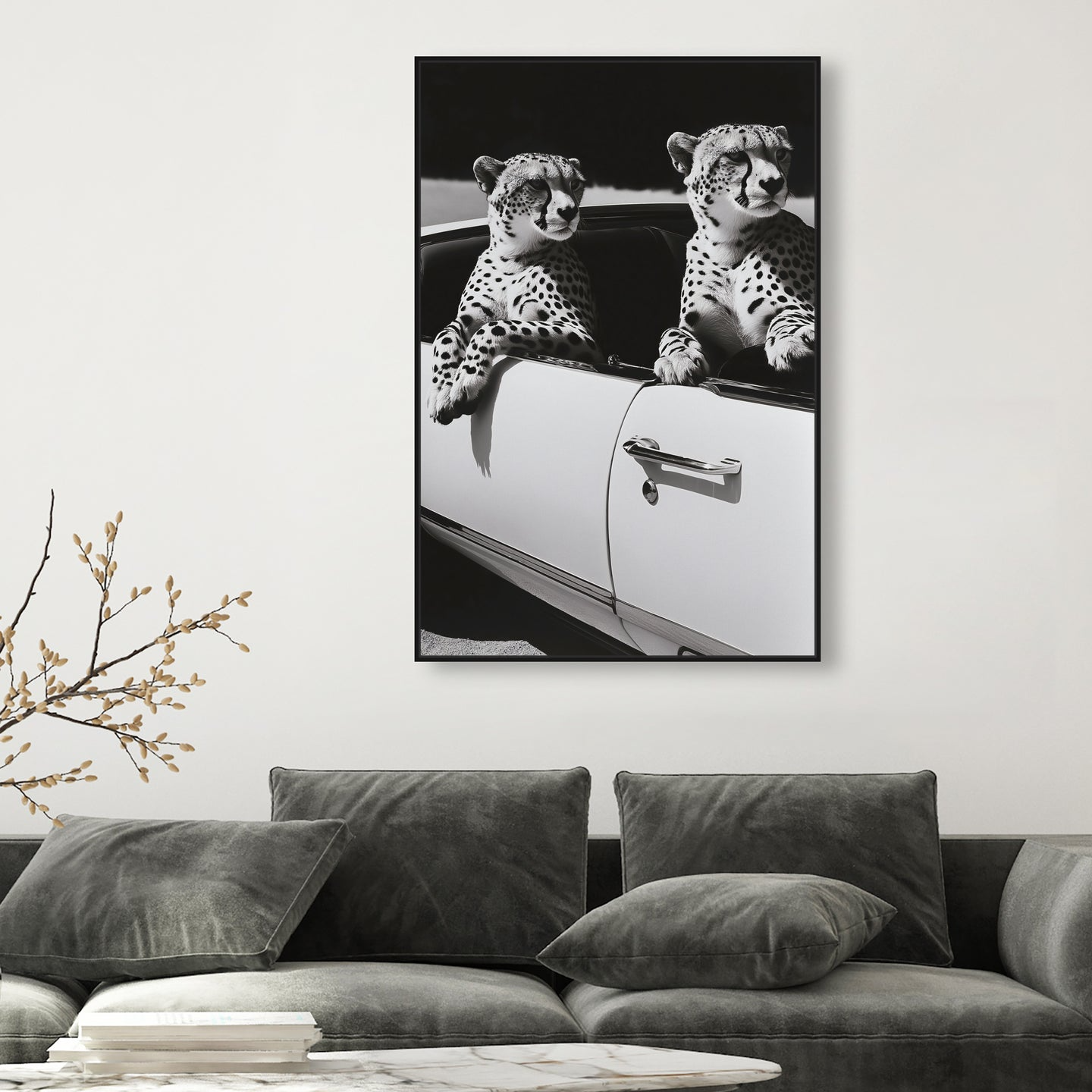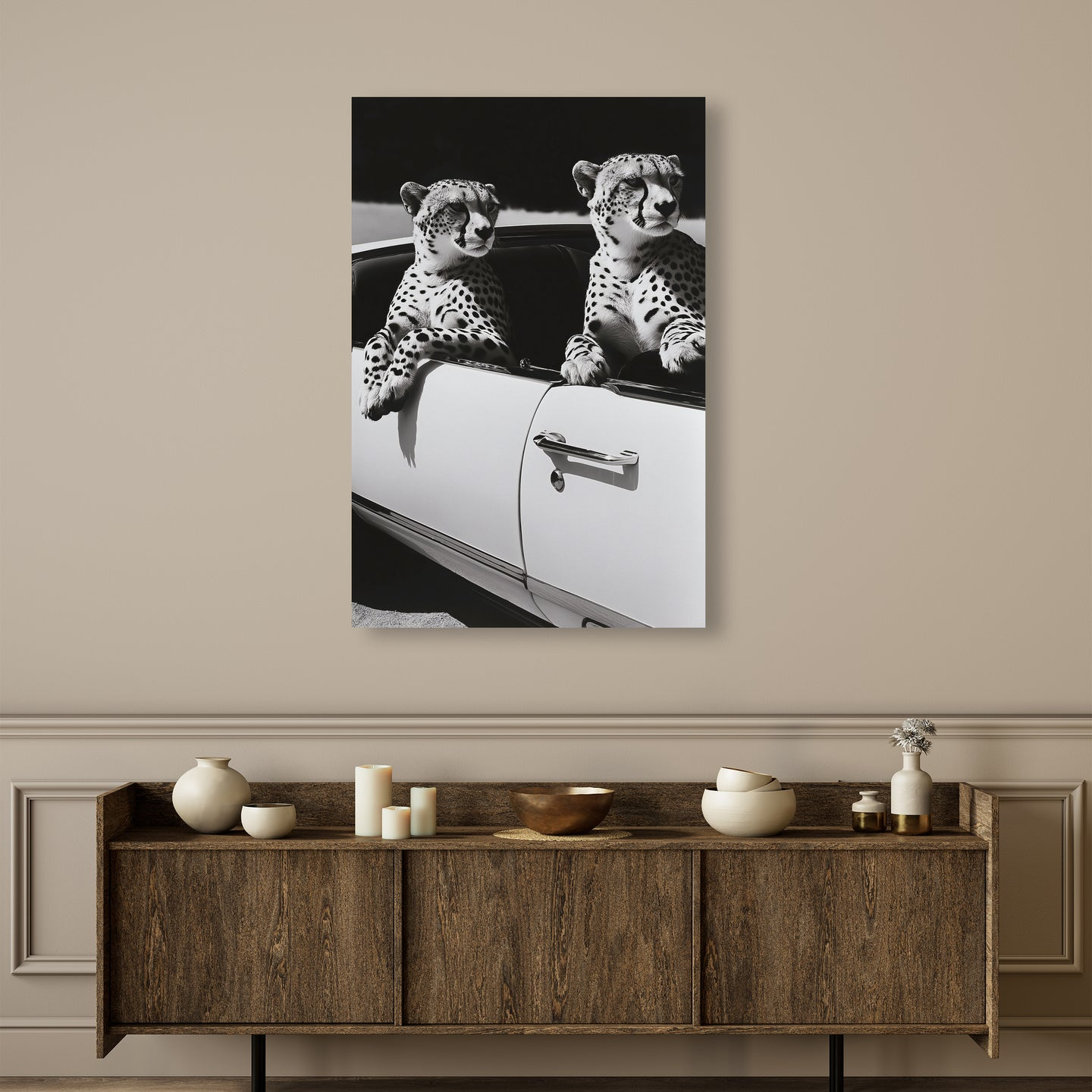 Striking and unmistakably stylish, this portrayal redefines classic wildlife photography with a contemporary, fashion-inspired edge. Featuring two cheetahs exuding effortless confidence, this black-and-white high-definition image brings bold contrast and sleek sophistication to any space. Perfectly suited for statement entryways or refined home offices, it merges timeless cool with a hint of rebellious attitude, reminiscent of classic car culture. Complement this piece with clean architectural lines, polished chrome accents, and subtle daring details for a truly impactful look.