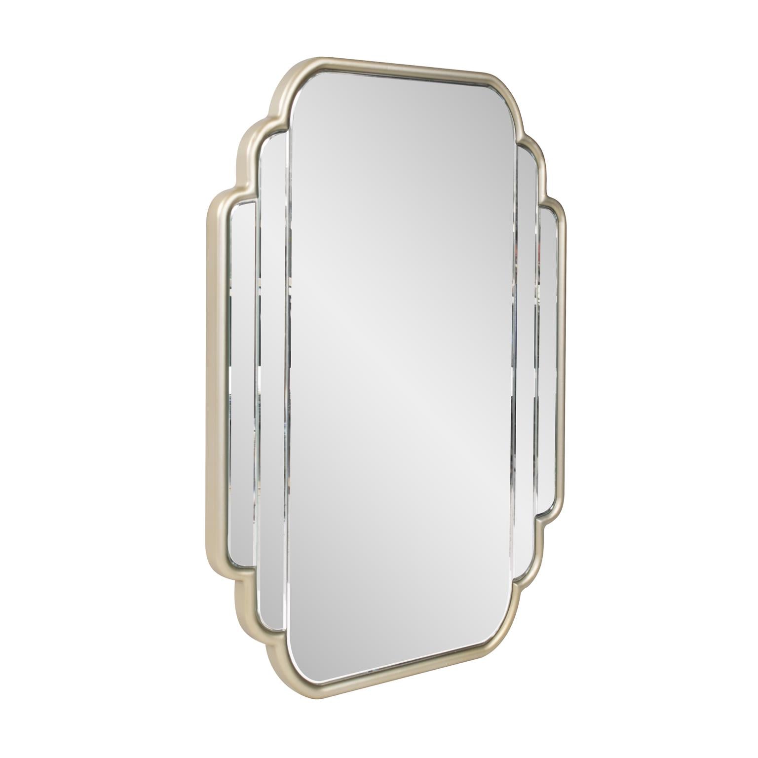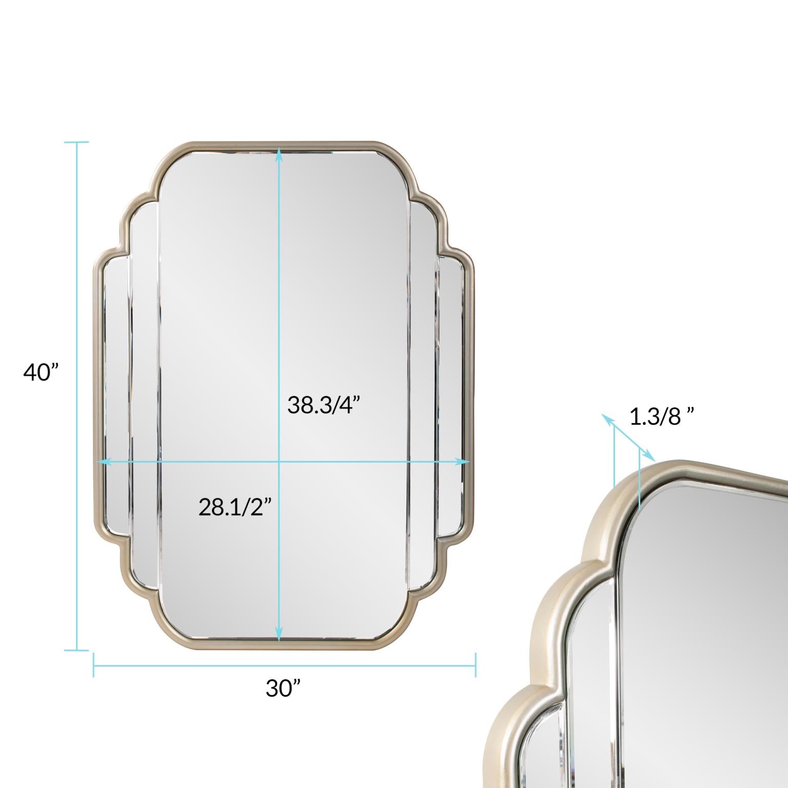 The Elliott Wall Mirror combines sophisticated design with practical versatility. Its distinctive scalloped edges are finished in champagne silver, while an interior beveled design creates visual depth and dimension. The included d-ring hardware allows for flexible installation in portrait or landscape orientation, making it an adaptable choice for various room layouts and décor schemes.