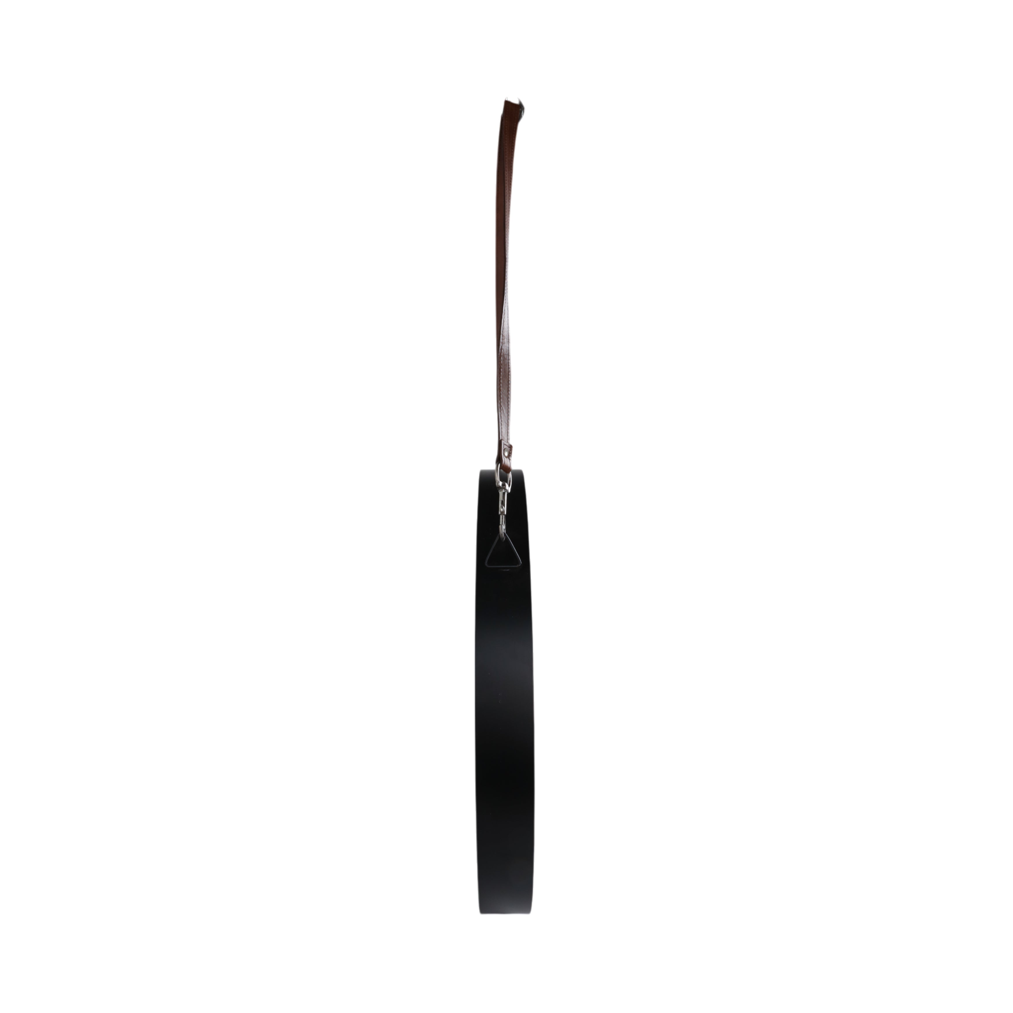 Black iron frame paired with faux leather hanger for a modern edge