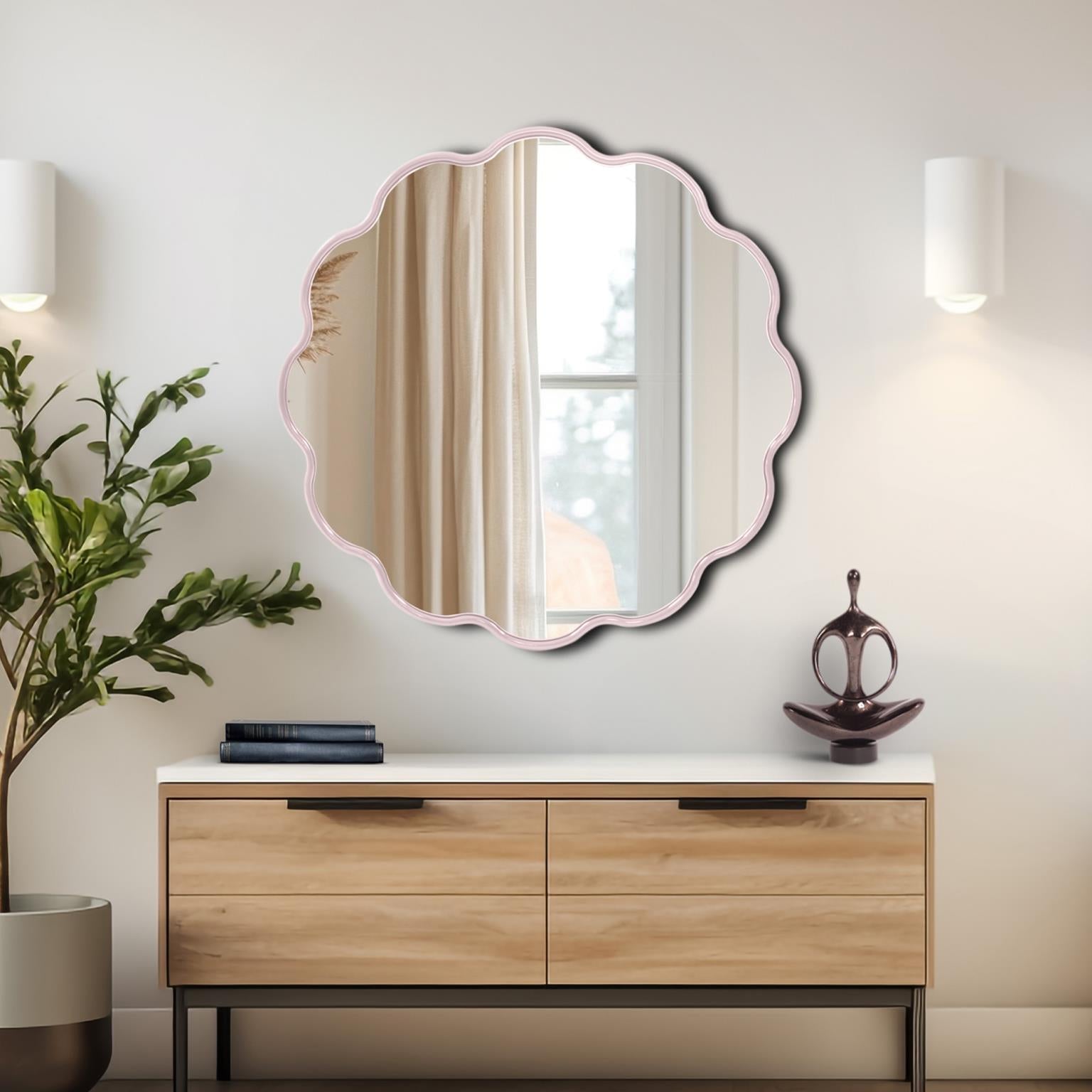 Perfect for making a cheerful statement in a bedroom, creating a welcoming focal point in an entryway, or adding a pop of personality to a living room, the Petal Edge Mirror is more than decor—it's a reflection of personal creativity and bold design.