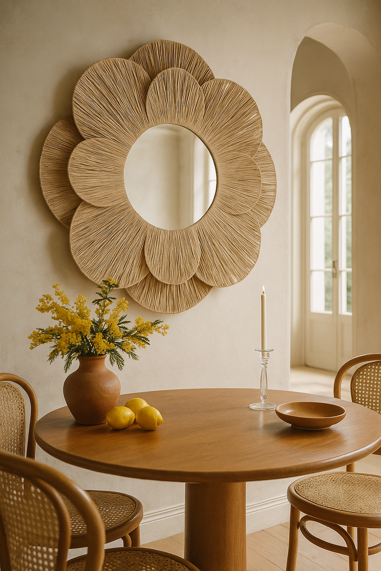 Add timeless sophistication and coastal charm to your home with the Raffia Floral Statement Mirror—a luxurious, high-quality décor piece that embodies nature’s beauty with a modern edge.