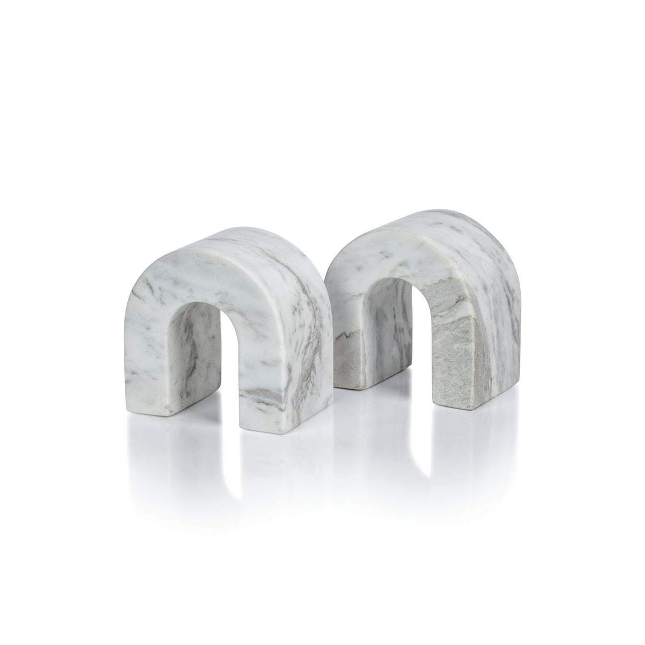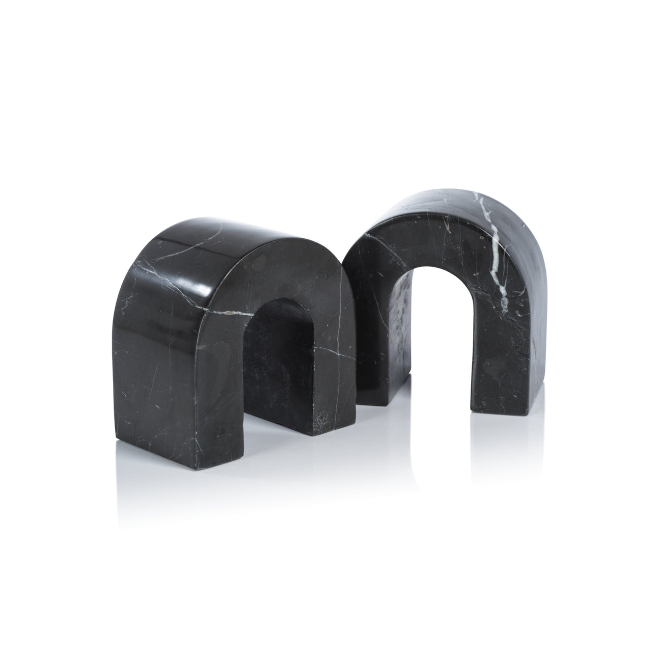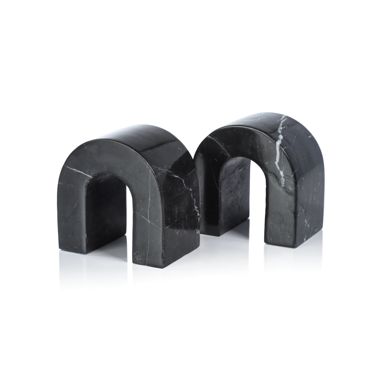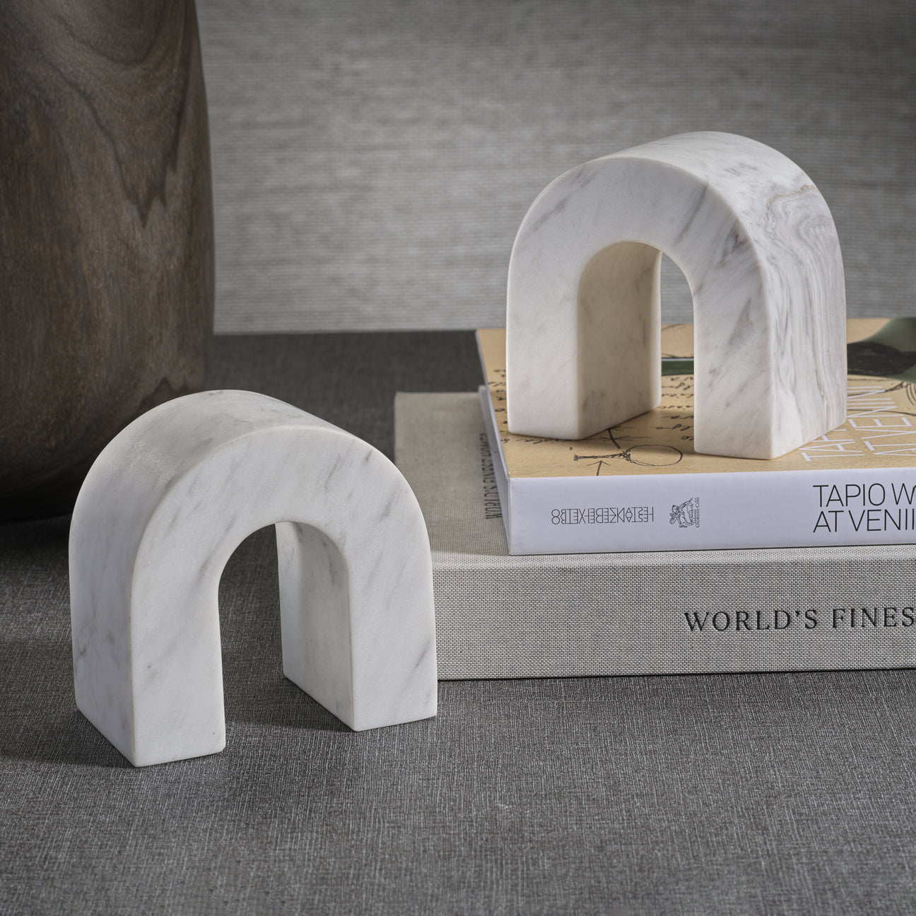 Anchor your library with timeless sophistication. The Arch Shape Marble Bookends are a sculptural set of two, meticulously crafted from premium Volakas marble. Each piece, measuring 4.75"L x 3"W x 4.75"H, offers substantial heft to securely organize your favorite books while making a powerful decorative statement. Choose from two classic finishes: the pristine, bright veins of White marble for a light and airy look, or the sleek, striking intensity of Black marble for bold, modern contrast. More than mere bookends, they are objets d'art that bring natural elegance and lasting stability to any shelf, desk, or mantle.