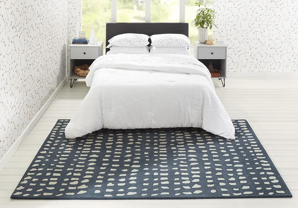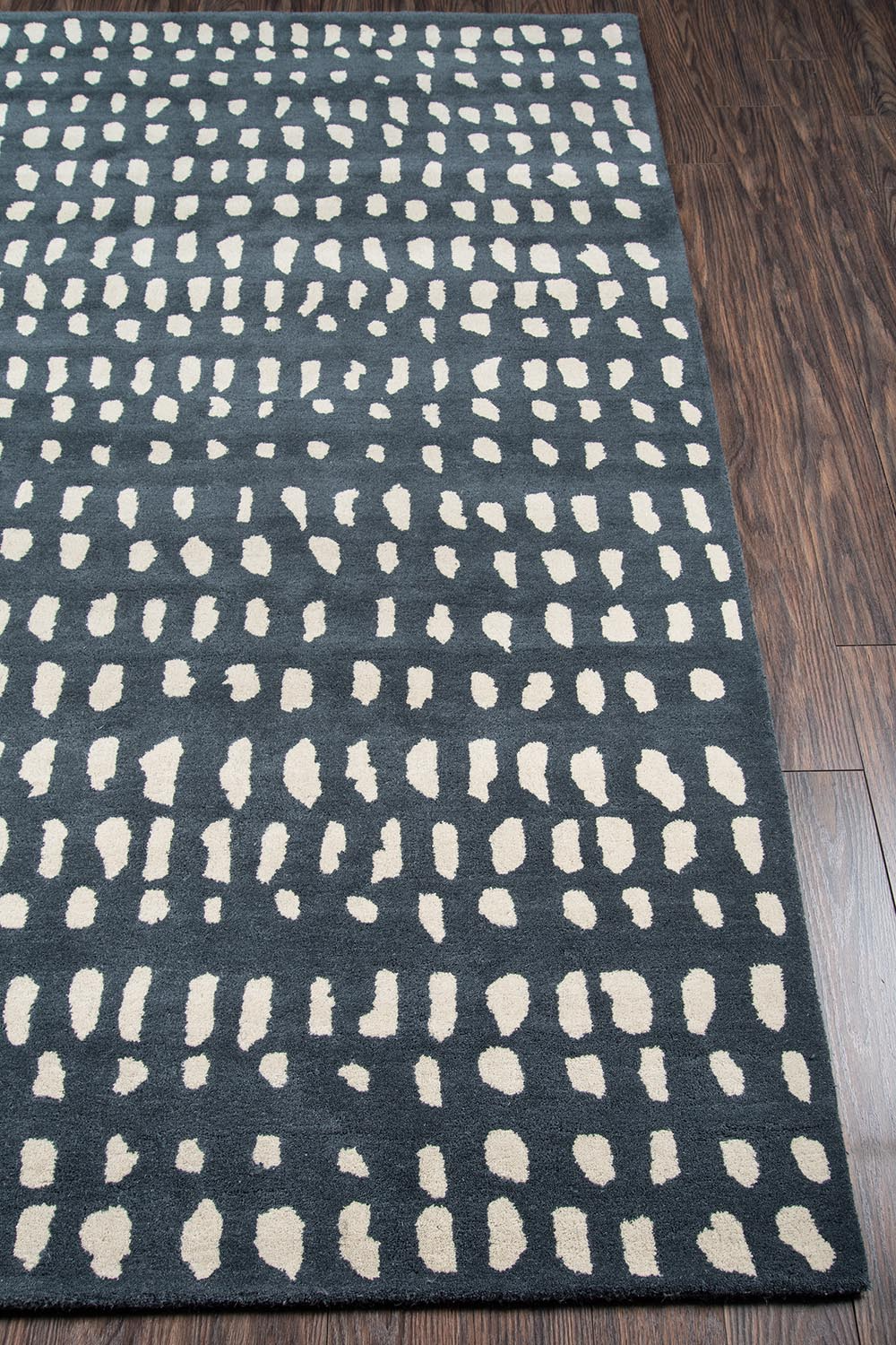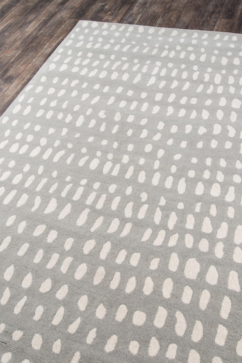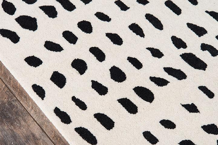 The graphic design of this modern area rug collection adds contemporary flair to floors throughout the home. Captured in a spectrum of vivid shades, polka dots, chevron stripes, triangulated patterns and checkerboard prints are perfect for layering above carpet or hard surfaces. Hand tufted from natural wool fibers, this decorative area rug assortment emanates fun with its oversized geometric arrangements and vibrant splashes of color.