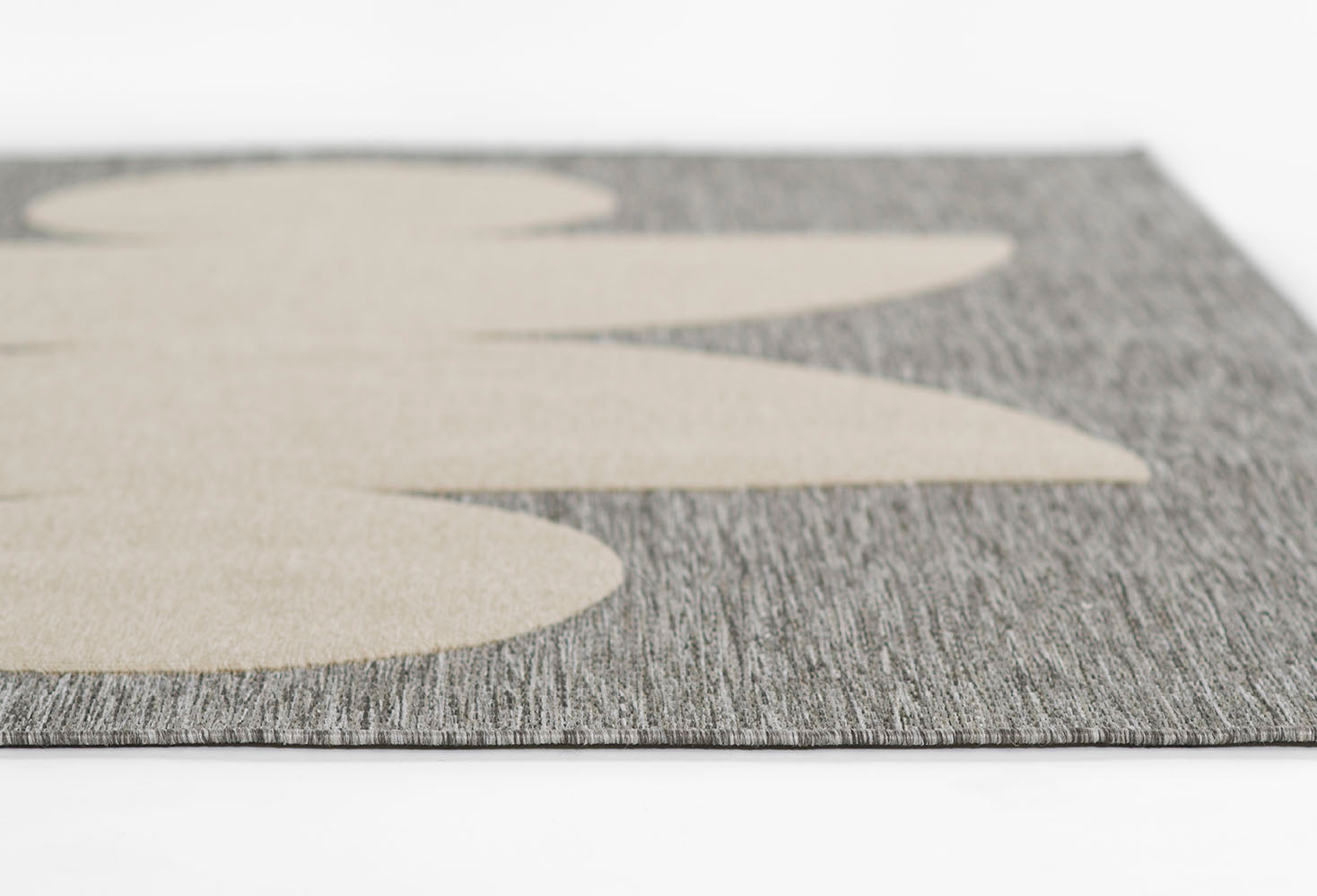 Bold geometric shapes are on display with this rug. A unique performance collection that is built tough but doesn’t sacrifice style, the pared down gray and white colors and soft shapes celebrate biophilic design in your space. While its well-tailored, high-low effect and quality construction is meant to be used.