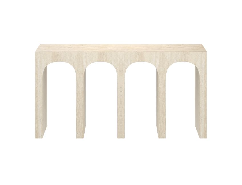 Sustainable and long-lasting furniture doesn't have to be hard to find - these commercial-grade tables are ready to stand up to any test. The durable build and finish of this grand console table is resistant to staining, heat, and scratches. A beautiful place to serve hors d'oeuvres, place name cards, or hold flower arrangements. A standout piece with four majestic arches, and the Travertine finish is a great way to elevate the look the of any space.