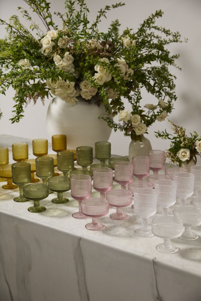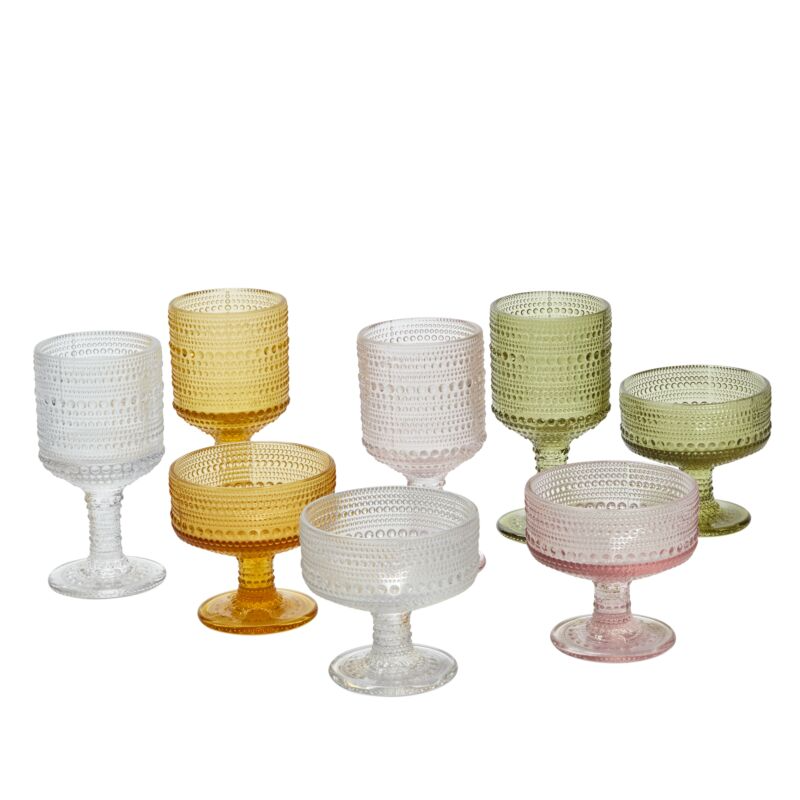 Celebrate in retro-chic style with the Paloma Olive-Green Coupe Glass. Forged from rich olive-green glass, its shallow, broad bowl is perfect for sparkling cocktails, classic Champagne, or creative tipples. The raised-dot surface texture lends a playful, vintage flair, while the streamlined, contemporary shape keeps it feeling fresh and sophisticated. With just the right weight in hand and a refined edge to frame your bubbles or boozy concoctions, this coupe glass turns every toast into an occasion.