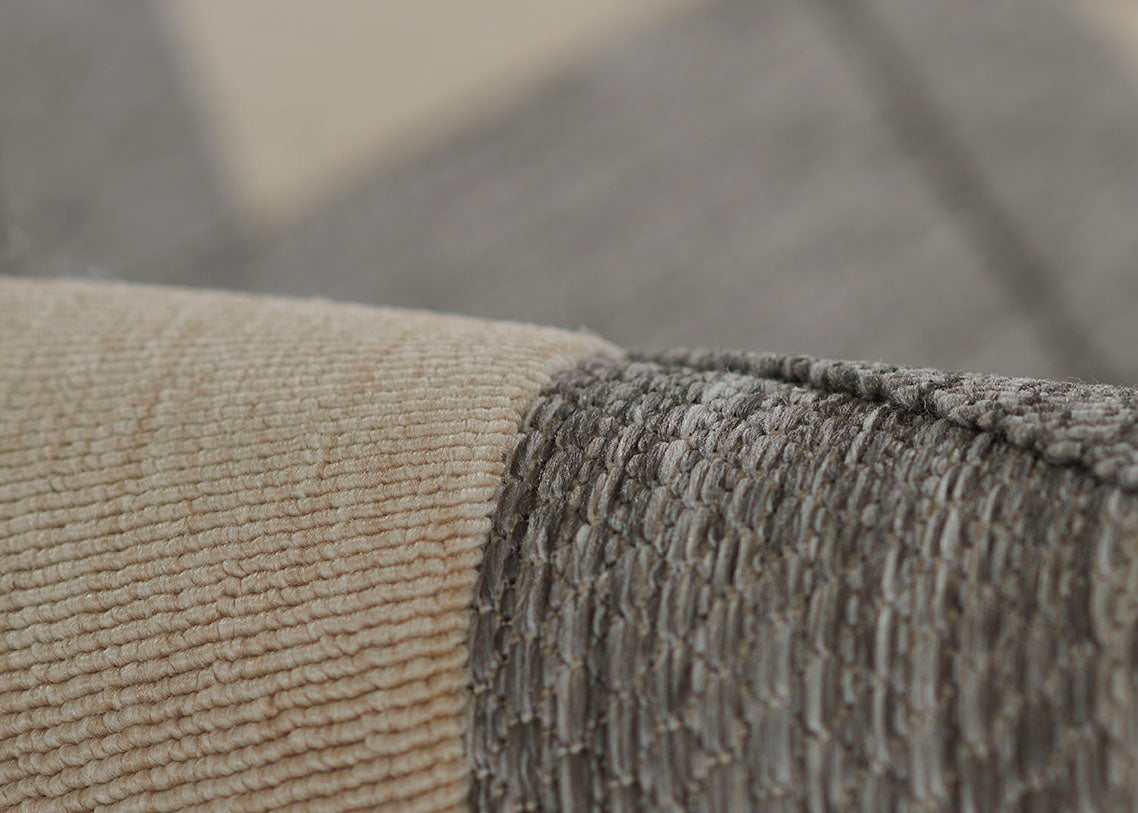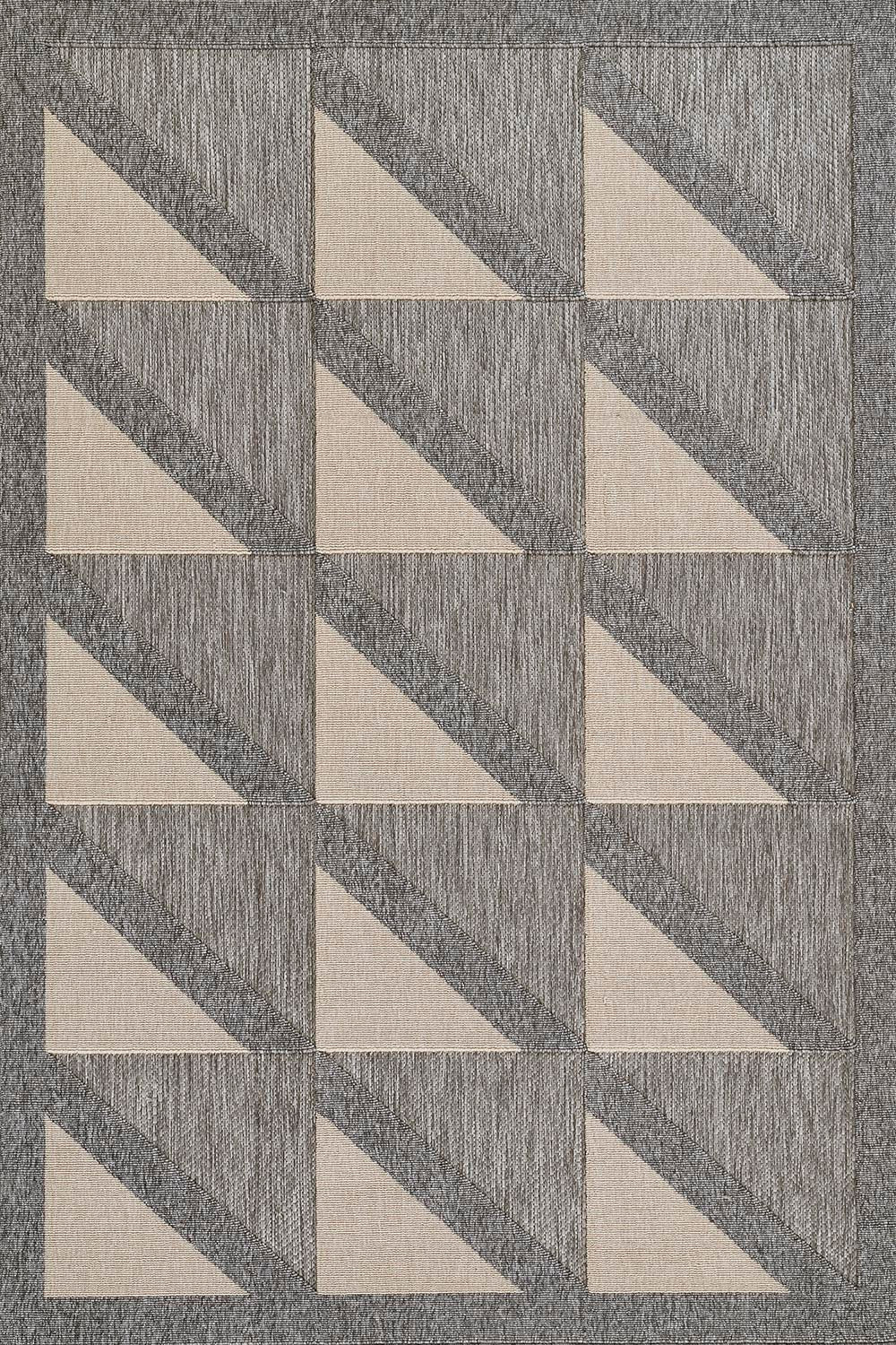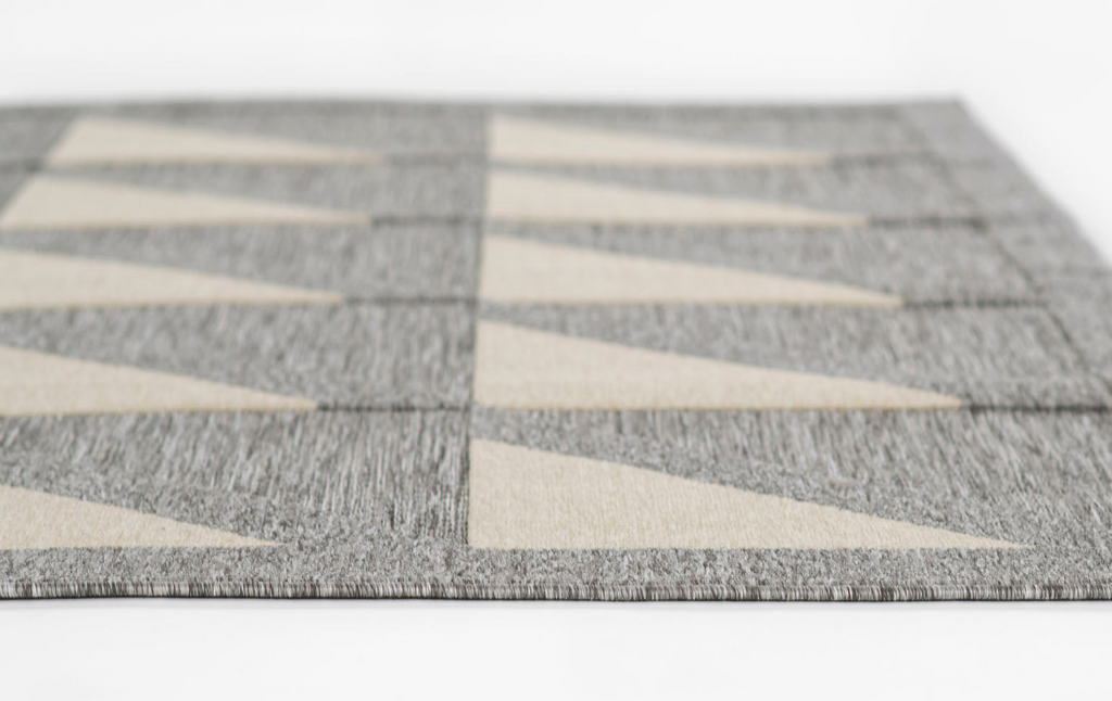 This rug from The Vines Collection features a striking geometric pattern in gray and beige, designed to enhance your space with clean lines and bold triangle shapes. Built for durability without compromising on style, its high-low effect and linear construction make it a perfect addition to any modern home.
