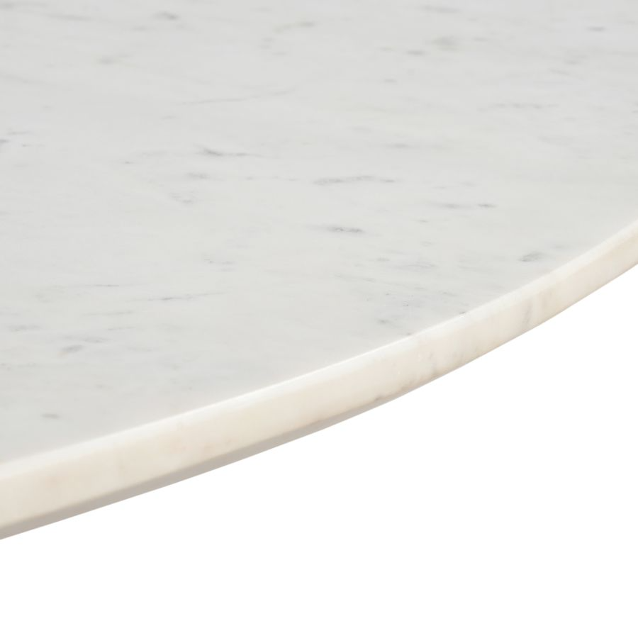 This gorgeous and sophisticated table is meticulously crafted from sustainably-sourced, solid mango wood, providing a rich and sturdy foundation. The reeded finish on the pedestal is perfectly topped with a thick, bevelled marble top creating a refined piece that will elevate your carefully designed space.