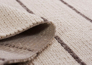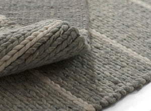 Hand-woven in India, using a blend of wool, viscose, and cotton. Featuring a unique chunky braided construction that is super soft underfoot. These rugs are ideal for creating a warm and comfortable space. Each rug has a hand-crafted appeal that enhances the cozy and casual nature of the construction. Incorporating the perfect blend of wool, viscose and cotton, for an unexpected softness. The accent colors in the stripes are slightly textured, to complement the organic, yet comfortable aesthetic of each rug.